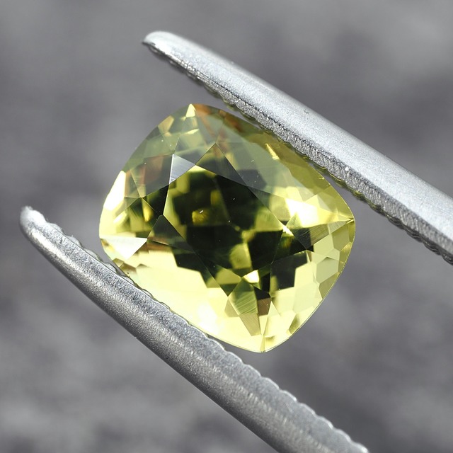 Parrot Chrysoberyl パロットクリソベリル 0.65ct 5.3×4.5×3.4mm Cushion クッション Madagascar マダガスカル産 ギリシャ語で黄金を意味する「クリソ」と緑の宝石を意味する「ベリル」からきています。 こちらは幻のベリルといわれるパロットクリソベリル。しかも定番はインド産なのに対してこちらはマダガスカルです。ネオン系のイエローとグリーンが織りなす輝きは唯一無二ですね! The name comes from the Greek words “chryso,” meaning gold, and “beryl,” meaning green gemstone. This is a parrot chrysoberyl, considered a rare variety of beryl. While the standard variety comes from India, this one is from Madagascar. The brilliance created by the interplay of neon yellow and green is truly one of a kind!