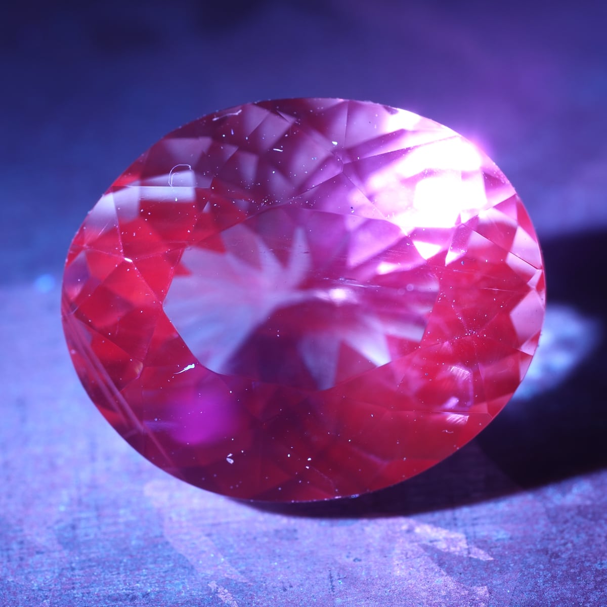そのフローライトの中でも珍しい「赤蛍光」を見せるオハエラ鉱山産の個体。グレイッシュホワイトの非常にクールでかっこいい地色、サイズも文句なしの7ct UP。