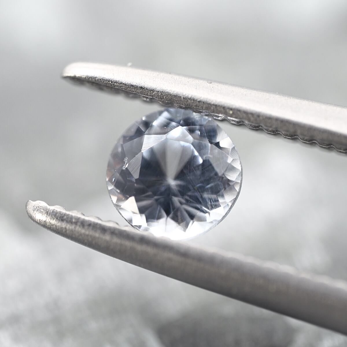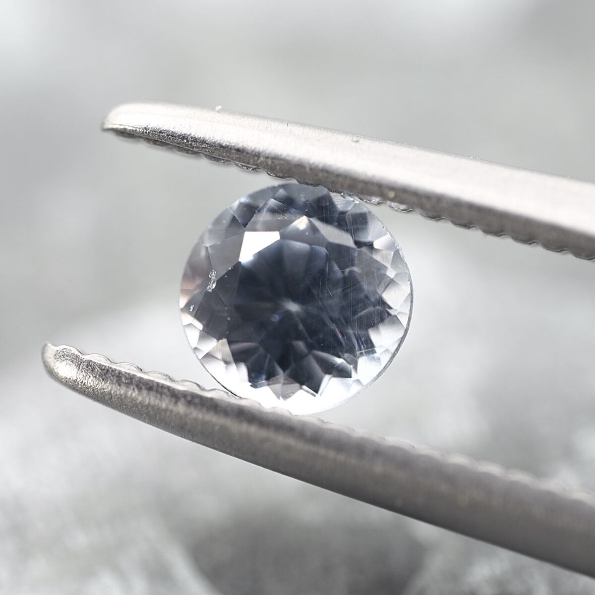 グレイッシュライトブルーといった涼しげでクールな色合いを持つ非加熱個体です。蛍光は写真ではピンクが強く出ておりますが肉眼で通常時はオレンジ混じりの可愛いピンク色です。