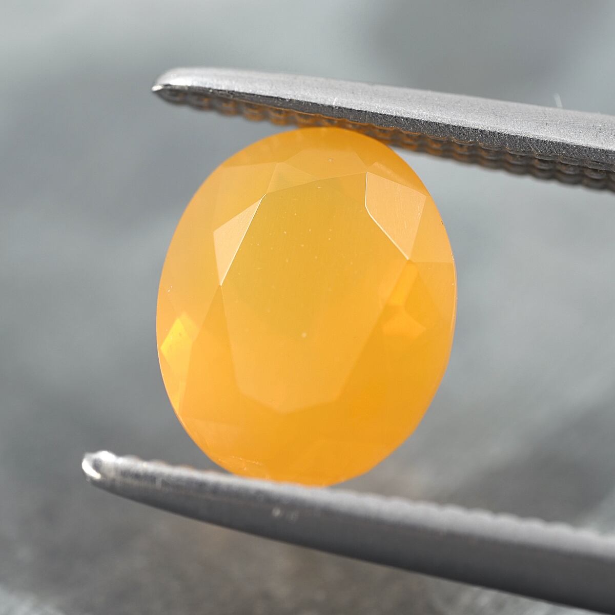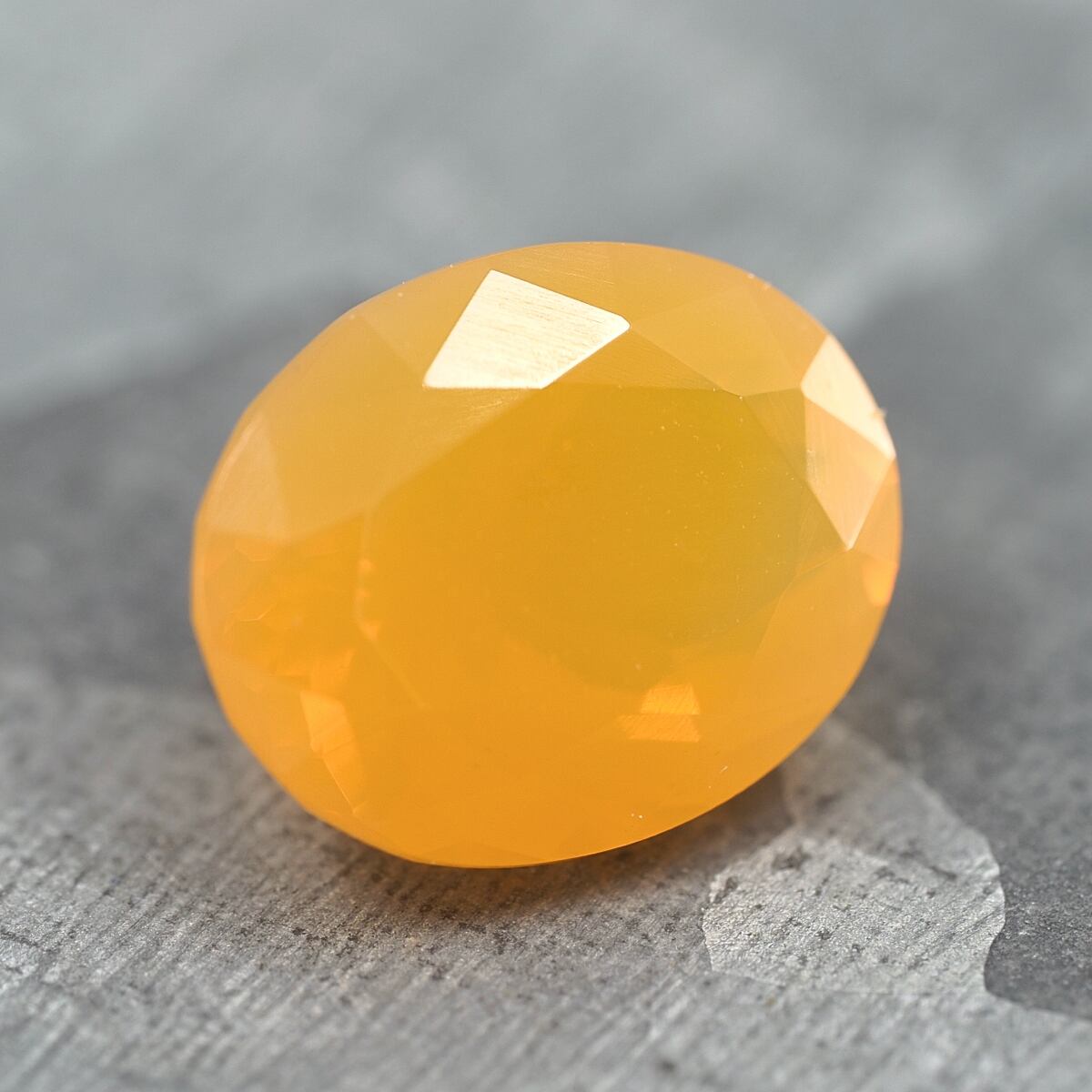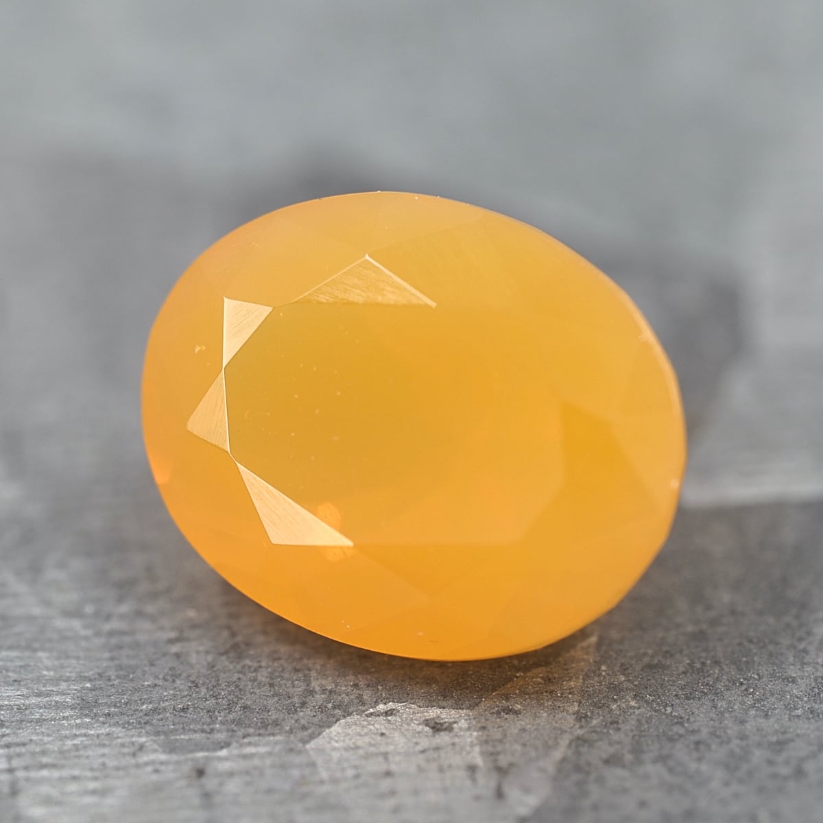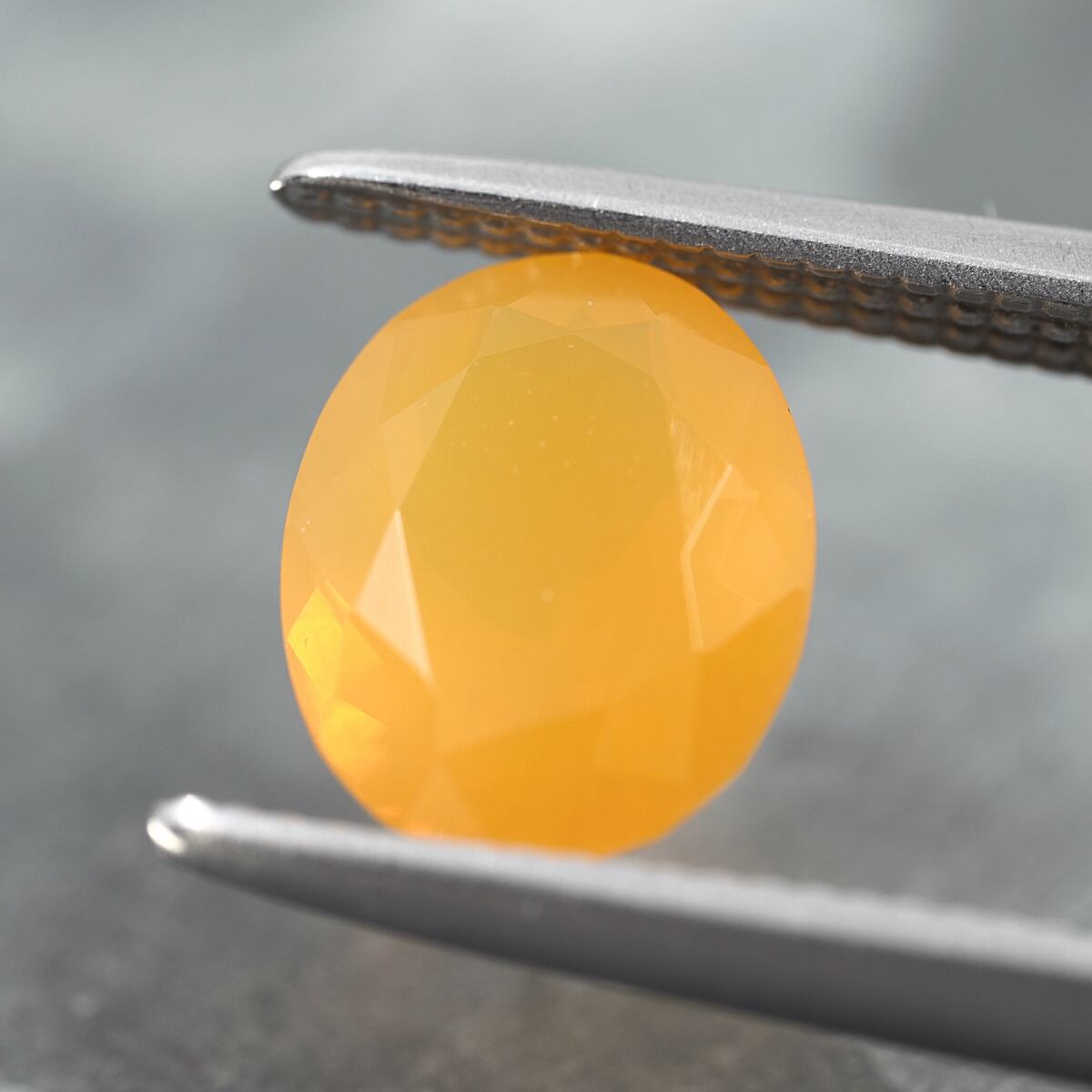 遊色のないコモンオパール、この色合いは珍しいのではないでしょうか。熟度の高いマンゴーのような濃いカラーをしています。また、写真では少しわかりにくいですが光源によって透過する箇所も見られます。