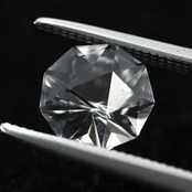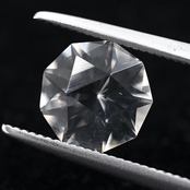 オクタゴンシェイプにエッジの効いたファセット、少し茶色味を感じるニアカラーレスだと思います。