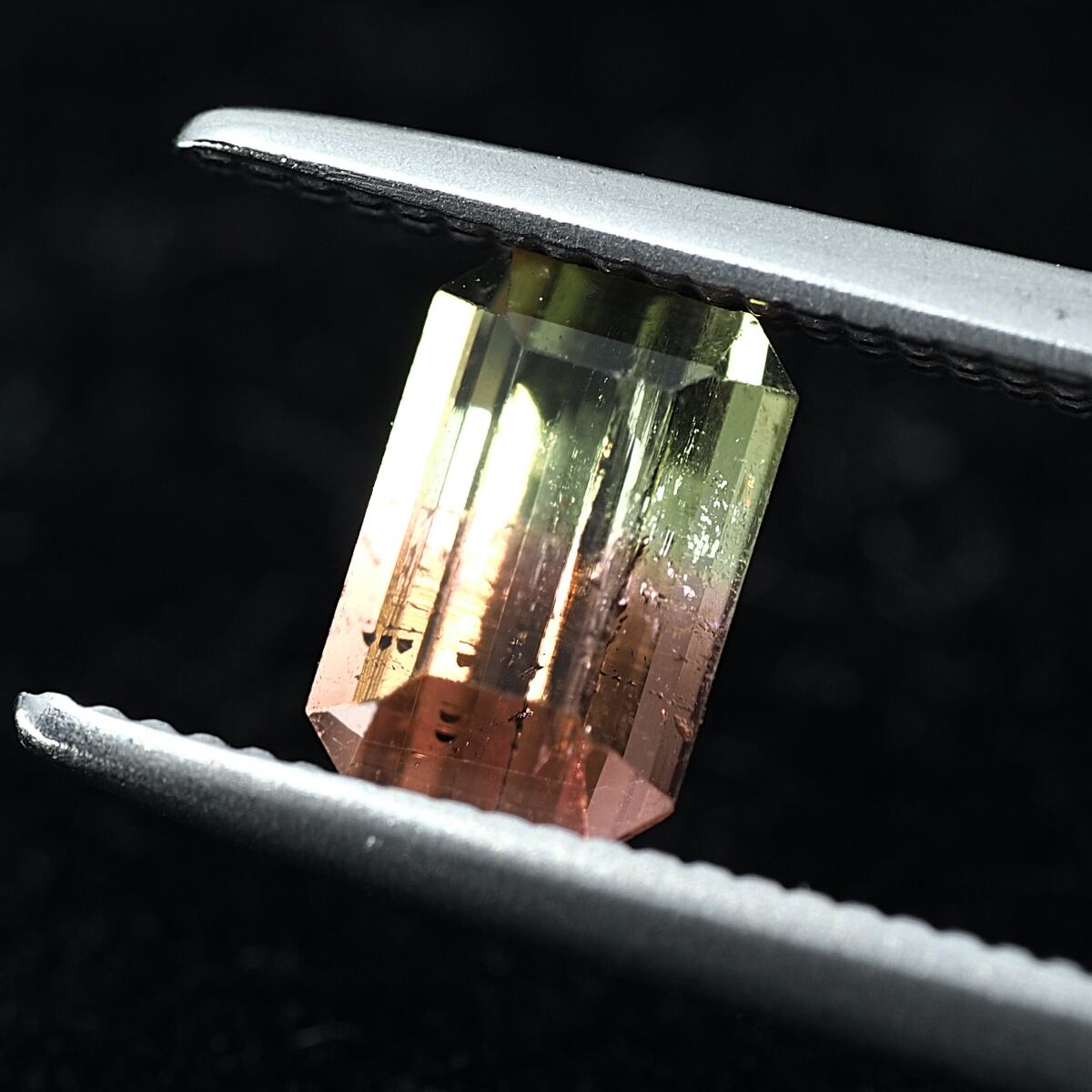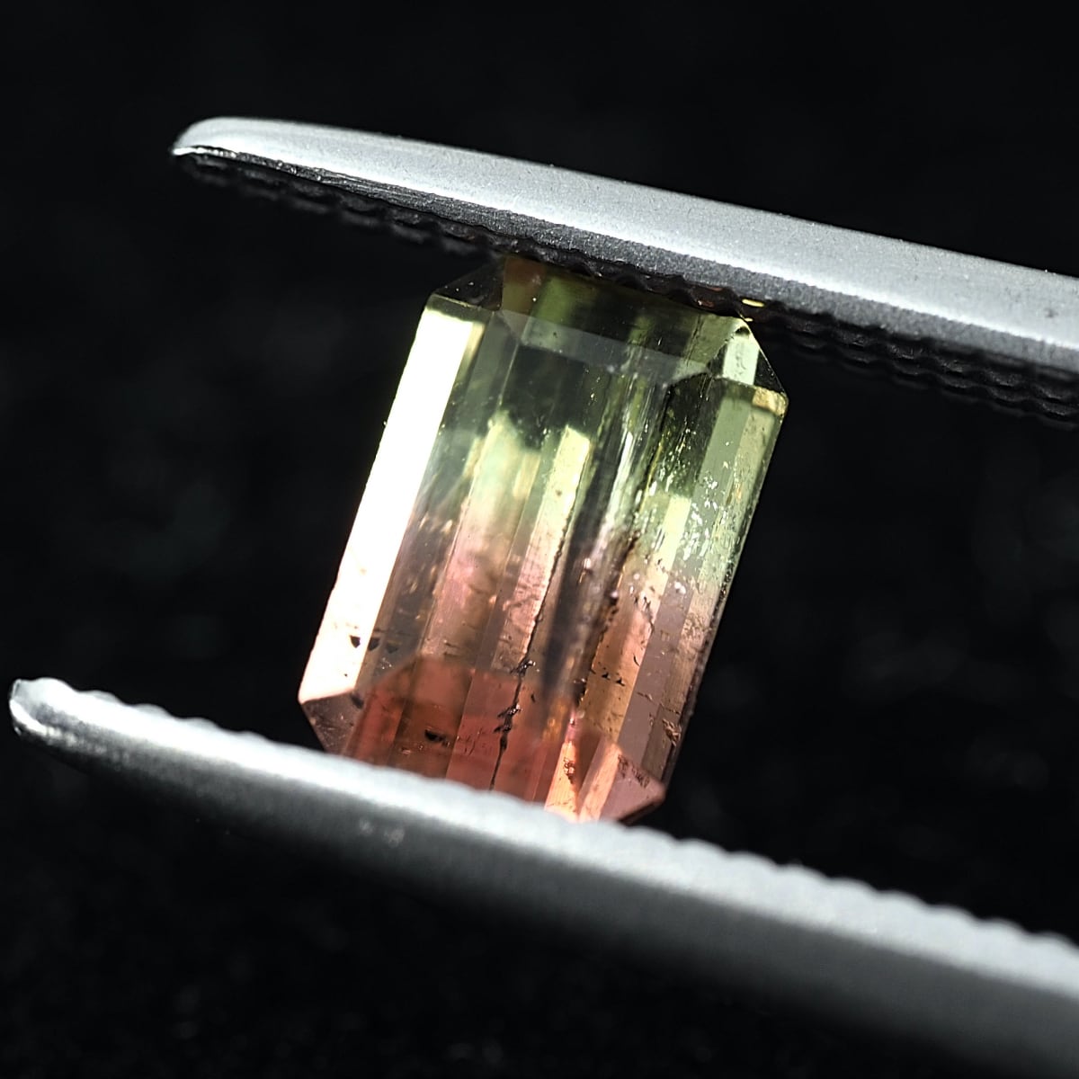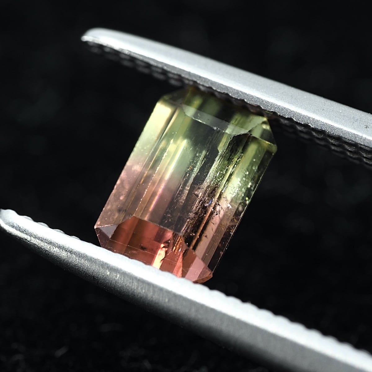 はっきりと色分かれがわかる定番色のバイカラーです。若干の液膜インクルージョンが見えますがキラメキはトルマリンらしからぬ美しさです。