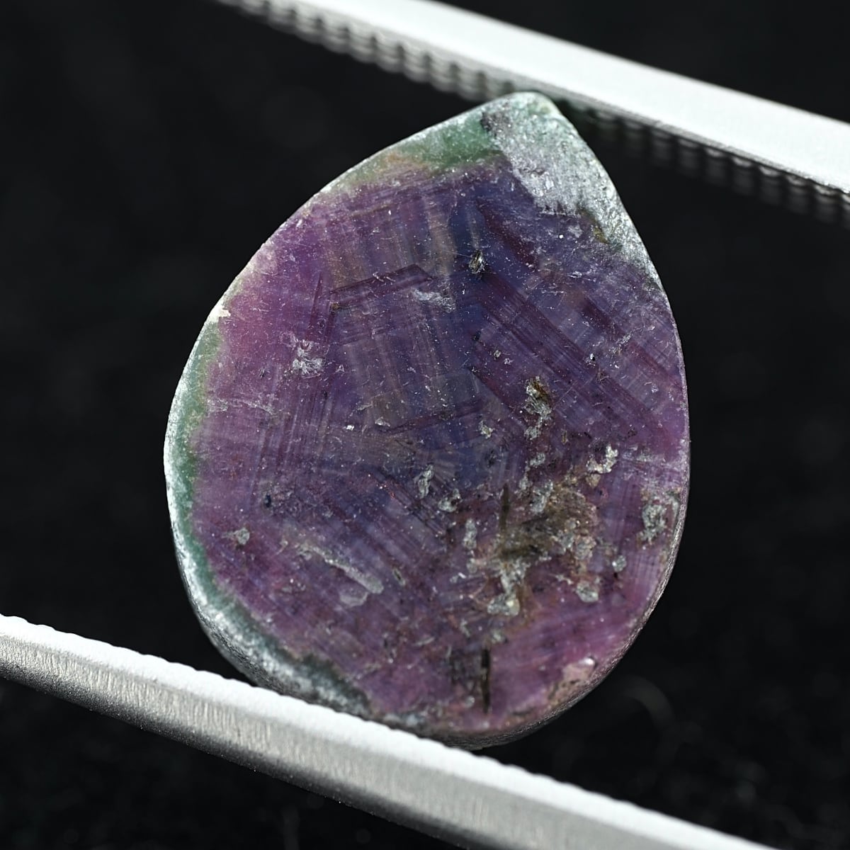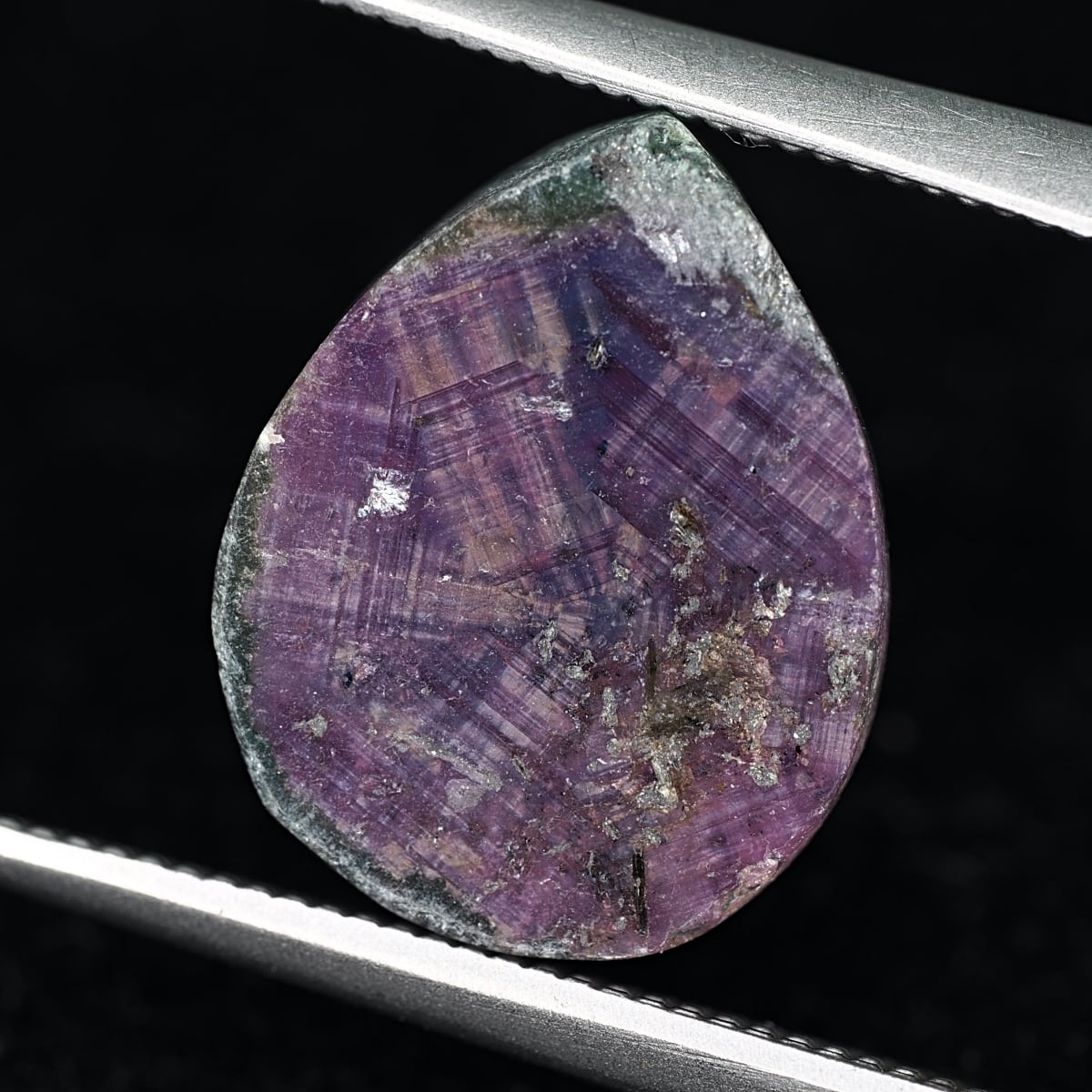 Named “Trapiche,” meaning “sugar cane press” in Spanish, this single stone features six radiating carbon lines—its signature trait—shimmering in silver. Moreover, this specimen is a rare type where zoisite also coexists within its outer shape.
