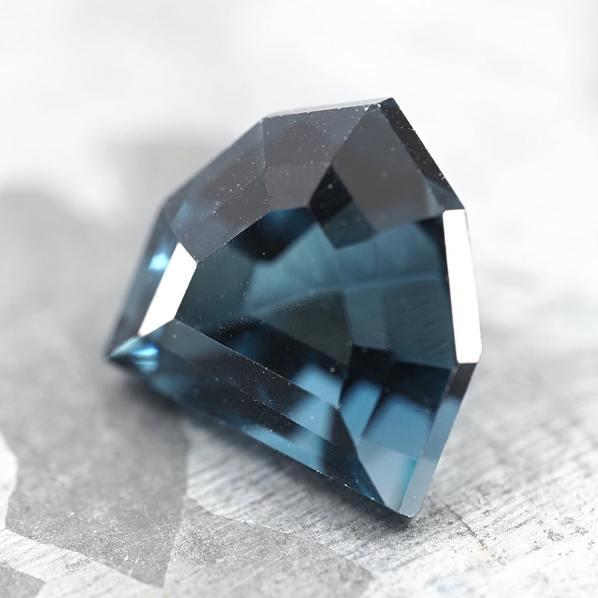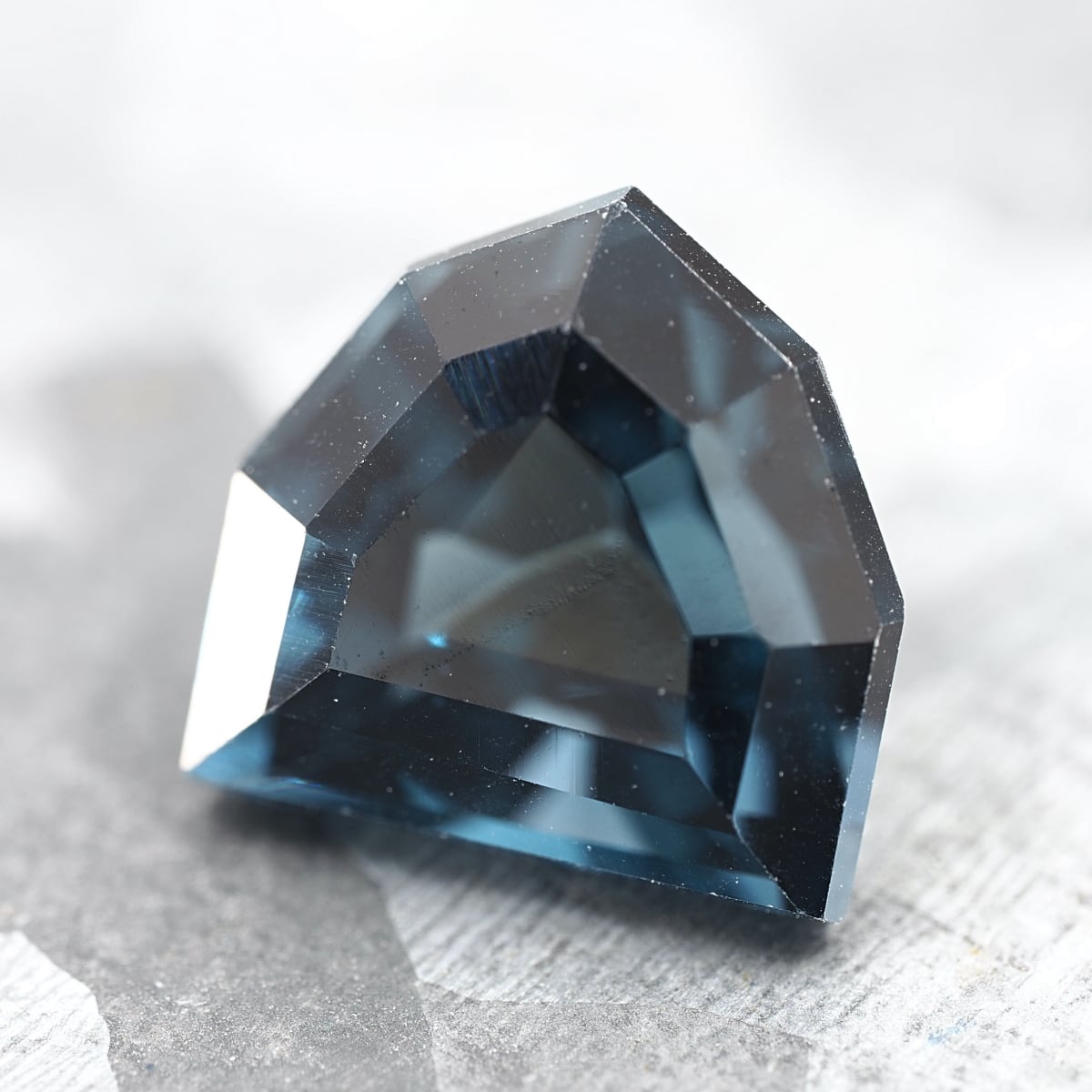 色良し、テリ良し、カット良しのロンドンブルートパーズです。深い海に太陽光が届いて煌めくような、そんな気品溢れる美しさを放っています。非常に個性的なカット!角度によって濃い箇所とのコントラストも素晴らしく綺麗です。