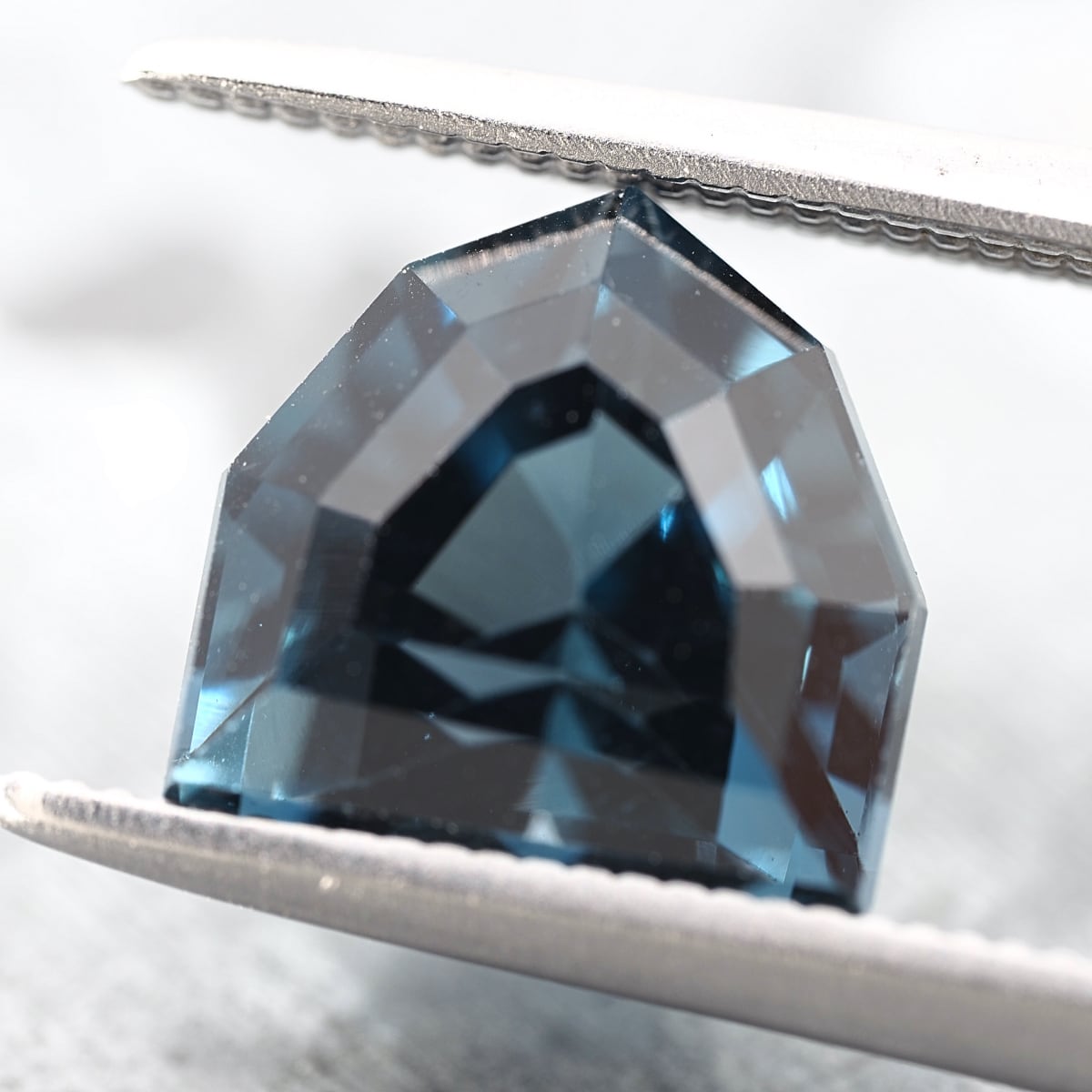 This London blue topaz boasts excellent color, luster, and cut. It radiates an elegant beauty reminiscent of sunlight reaching the depths of the ocean and sparkling there. Its cut is exceptionally unique! The contrast with the darker areas is stunningly beautiful depending on the angle.