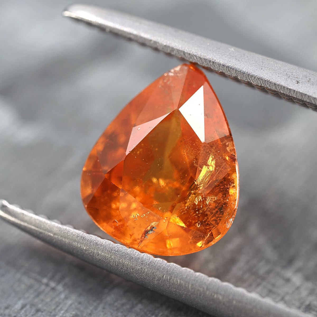 赤色系ガーネットのパイラルスパイト系統の中のスペサルティンガーネットは、オレンジ赤色、帯紫赤色、帯赤褐色などの色を示すマンガンを含むガーネット。別名タンジェリンガーネット、オレンジがかなり強いものはマンダリンガーネットとも言われます。