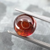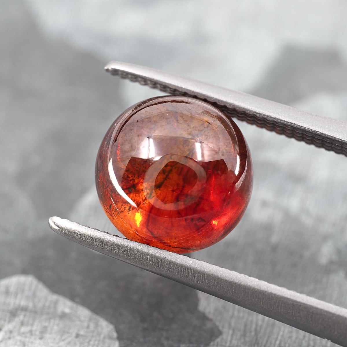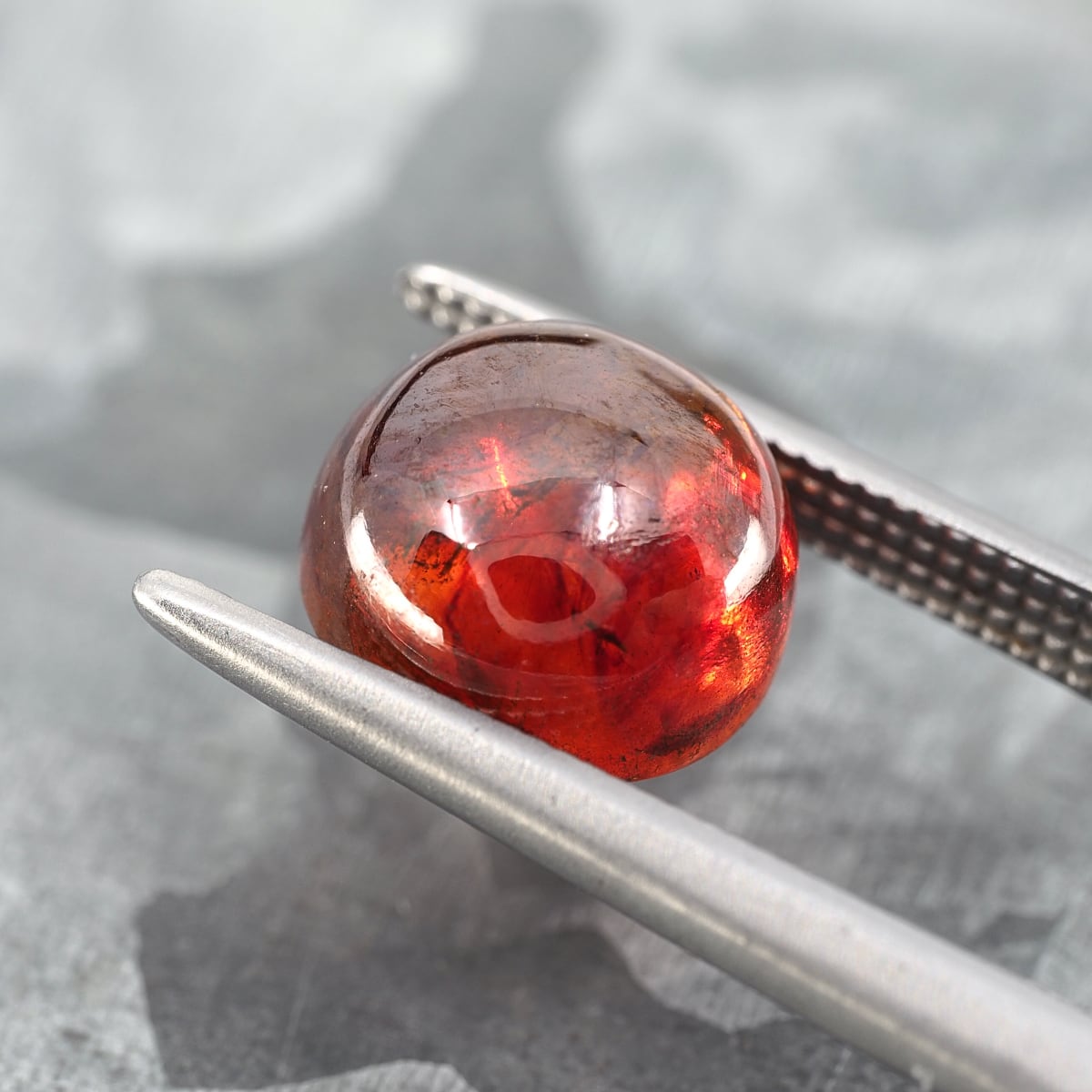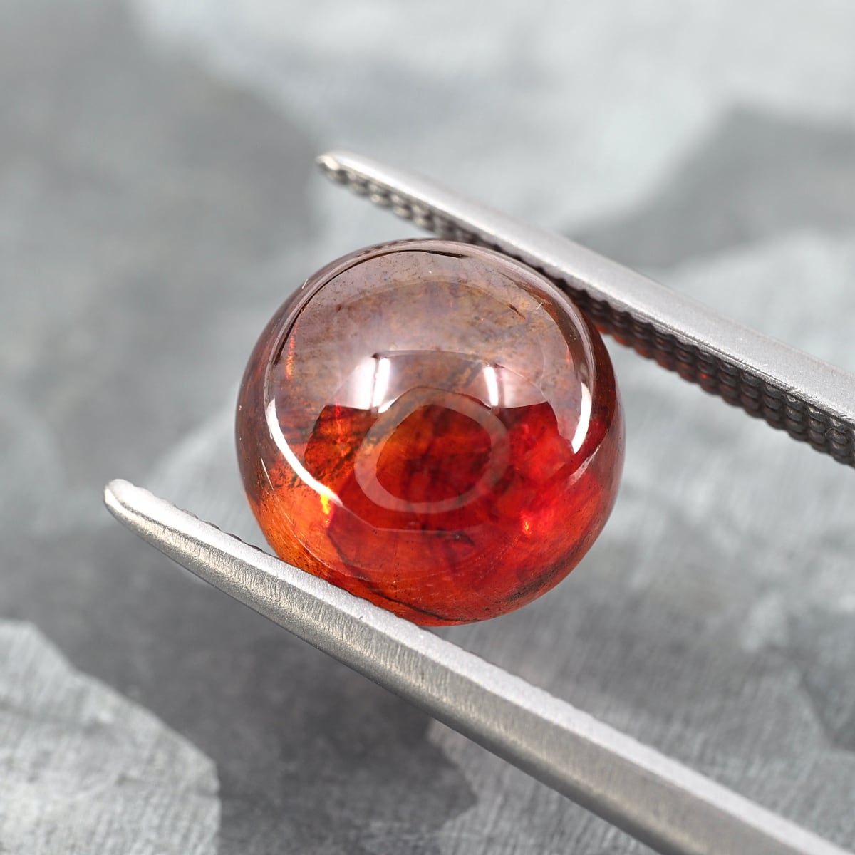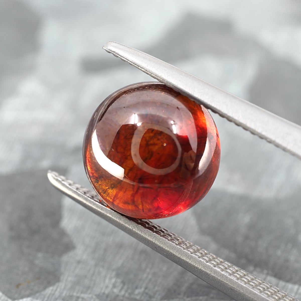 While the standard Spanish variety predominantly features orange to yellow hues, rare reddish shades like this one also exist. This particular specimen is generously sized, and its cabochon cut showcases a truly magnificent lustrous sheen!