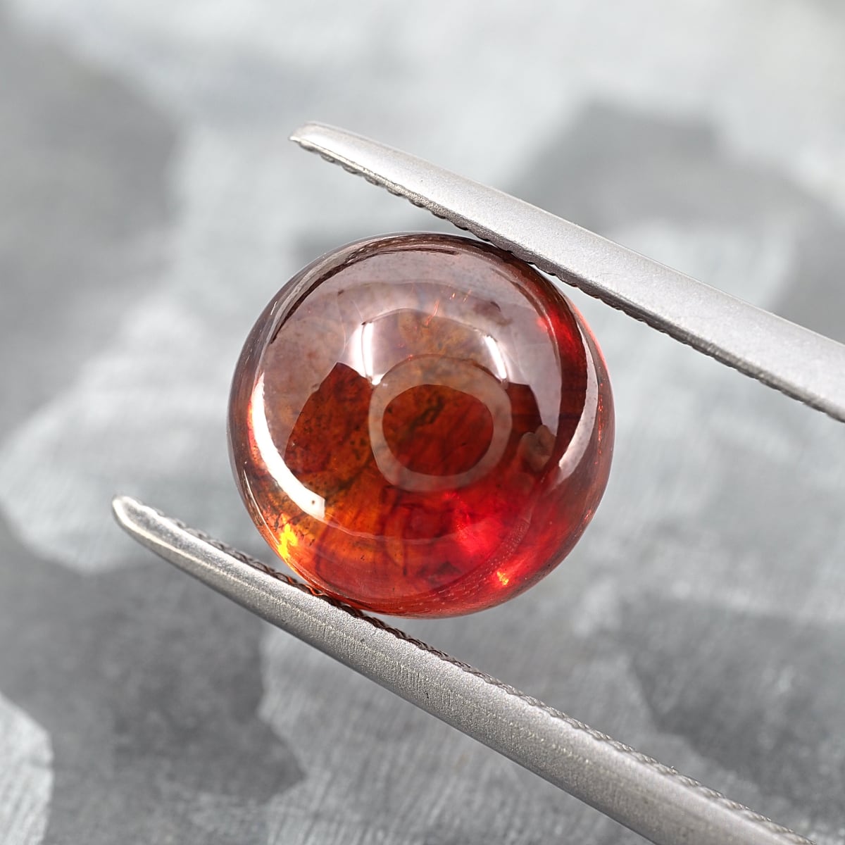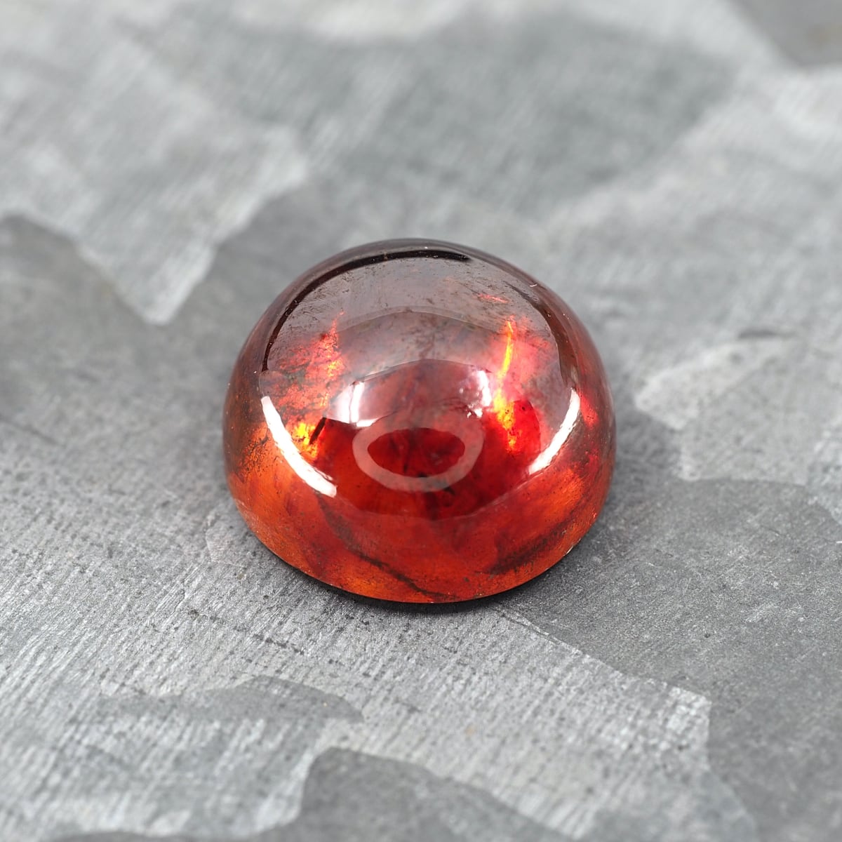 定番であるスペイン産はオレンジ〜黄色が非常に多いのですが、こちらのように赤みが強い希少な色合いも存在します。今回のものはサイズも大きめ、かつカボションカットでの「うるツヤ感」も見事です!