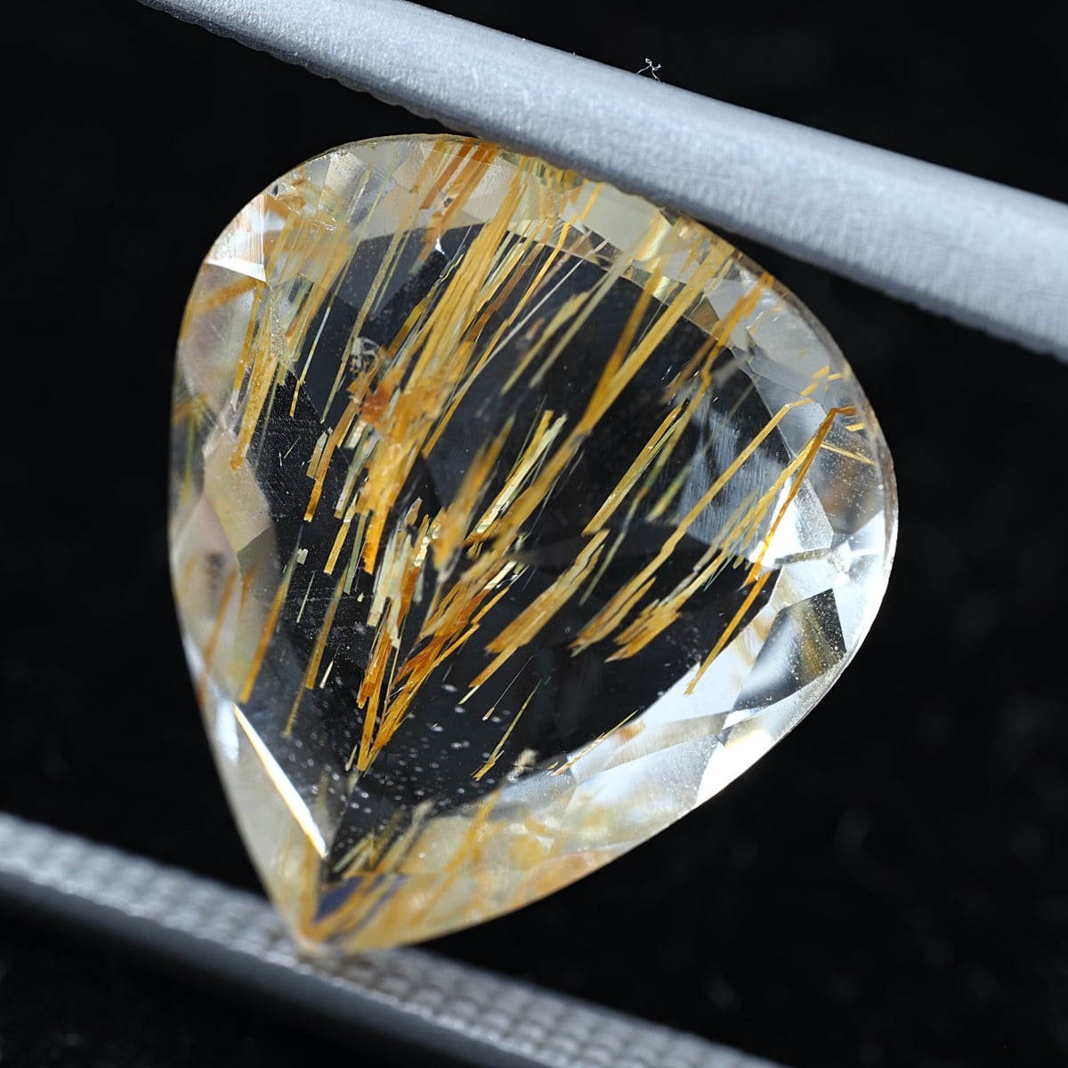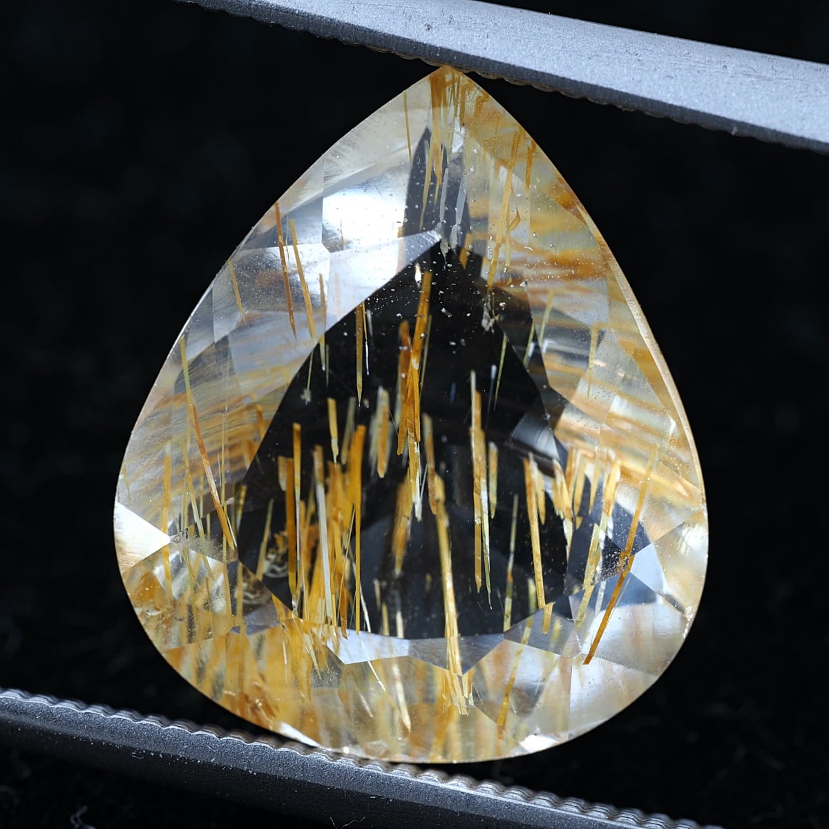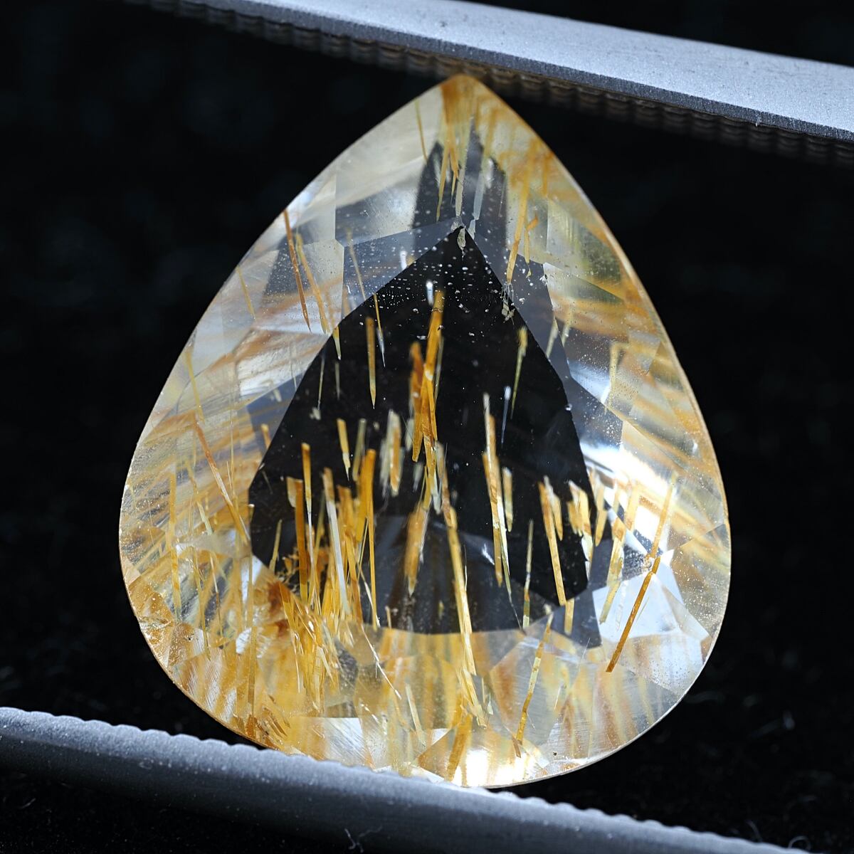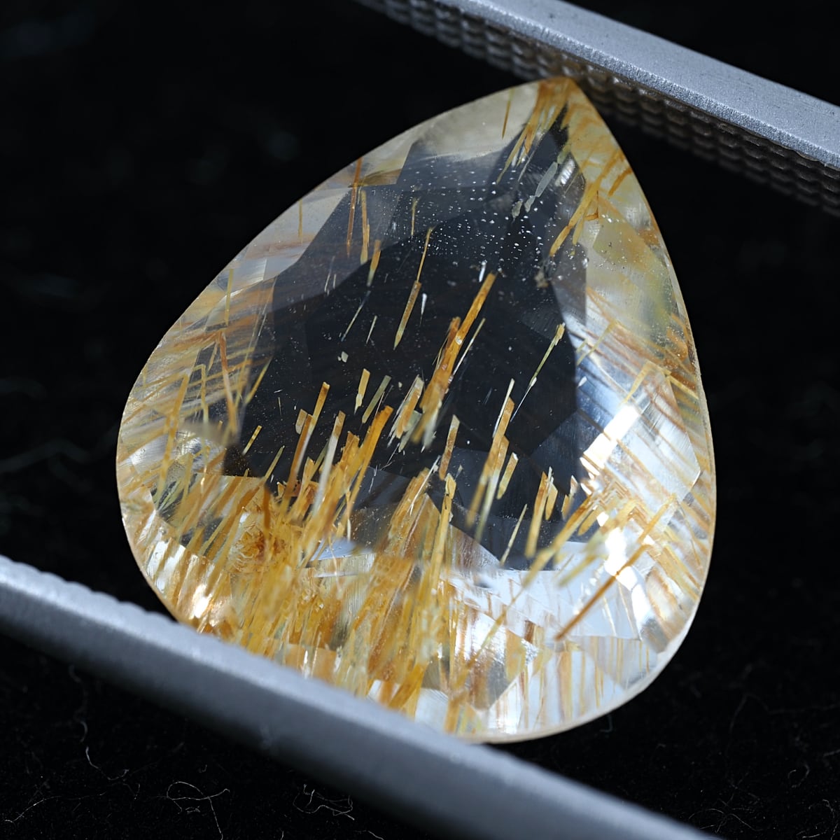 通称チューブイントパーズ。リモナイト(褐鉄鉱)入りのストローのような筒状インクルージョンがホワイトトパーズに内包されています。ルチルトパーズと比較すると、内包物自体の太さの違いや褐色の色合いが目立ちます。