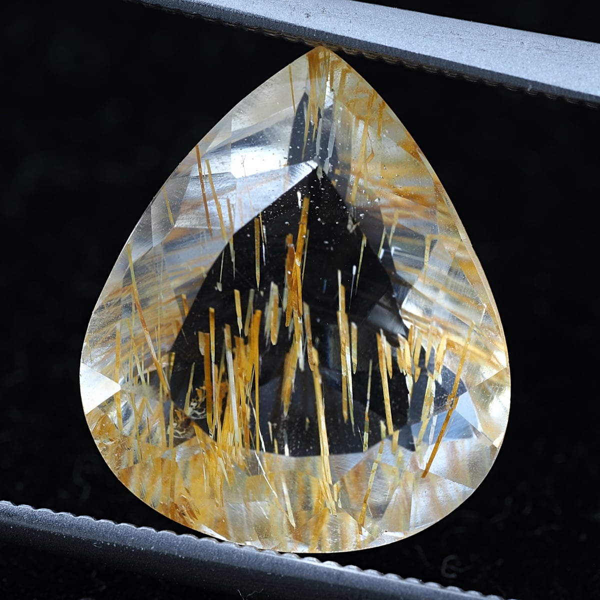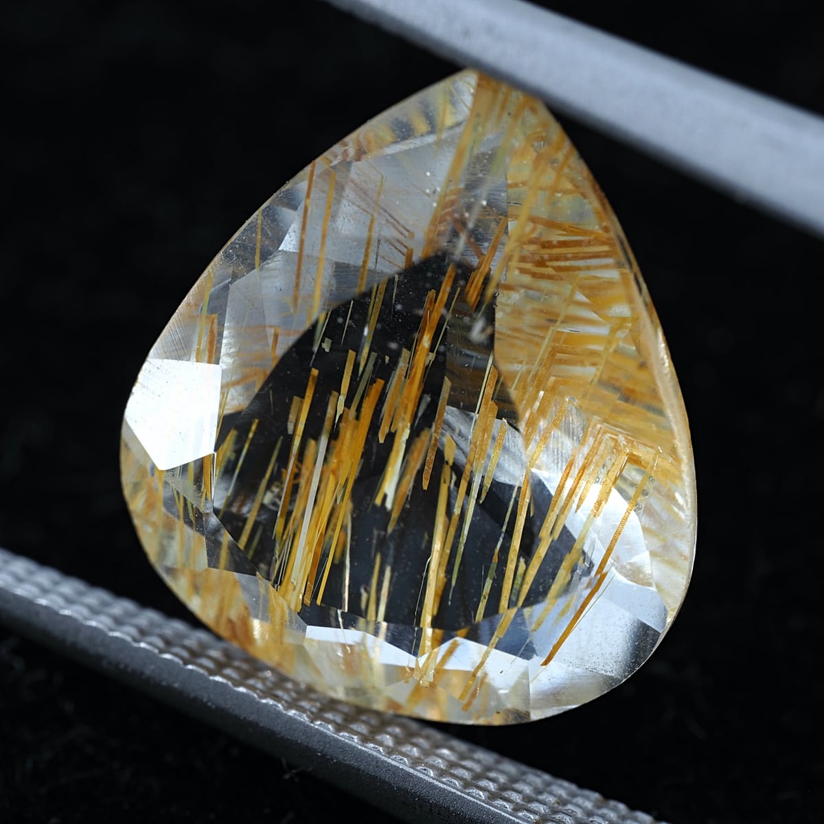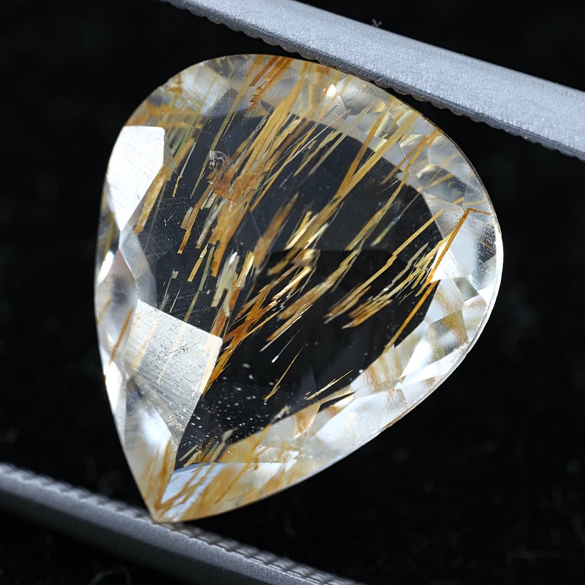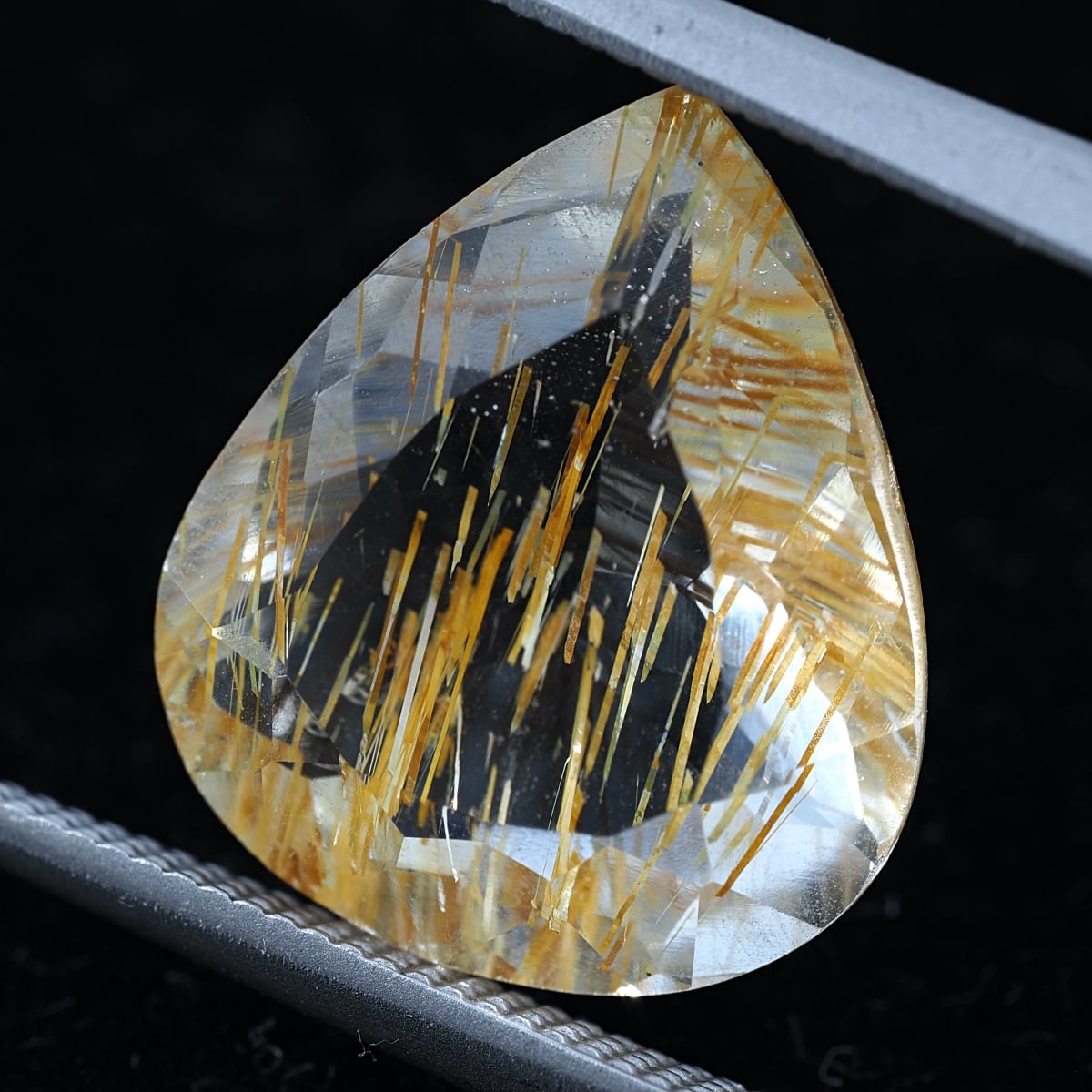 通称チューブイントパーズ。リモナイト(褐鉄鉱)入りのストローのような筒状インクルージョンがホワイトトパーズに内包されています。ルチルトパーズと比較すると、内包物自体の太さの違いや褐色の色合いが目立ちます。