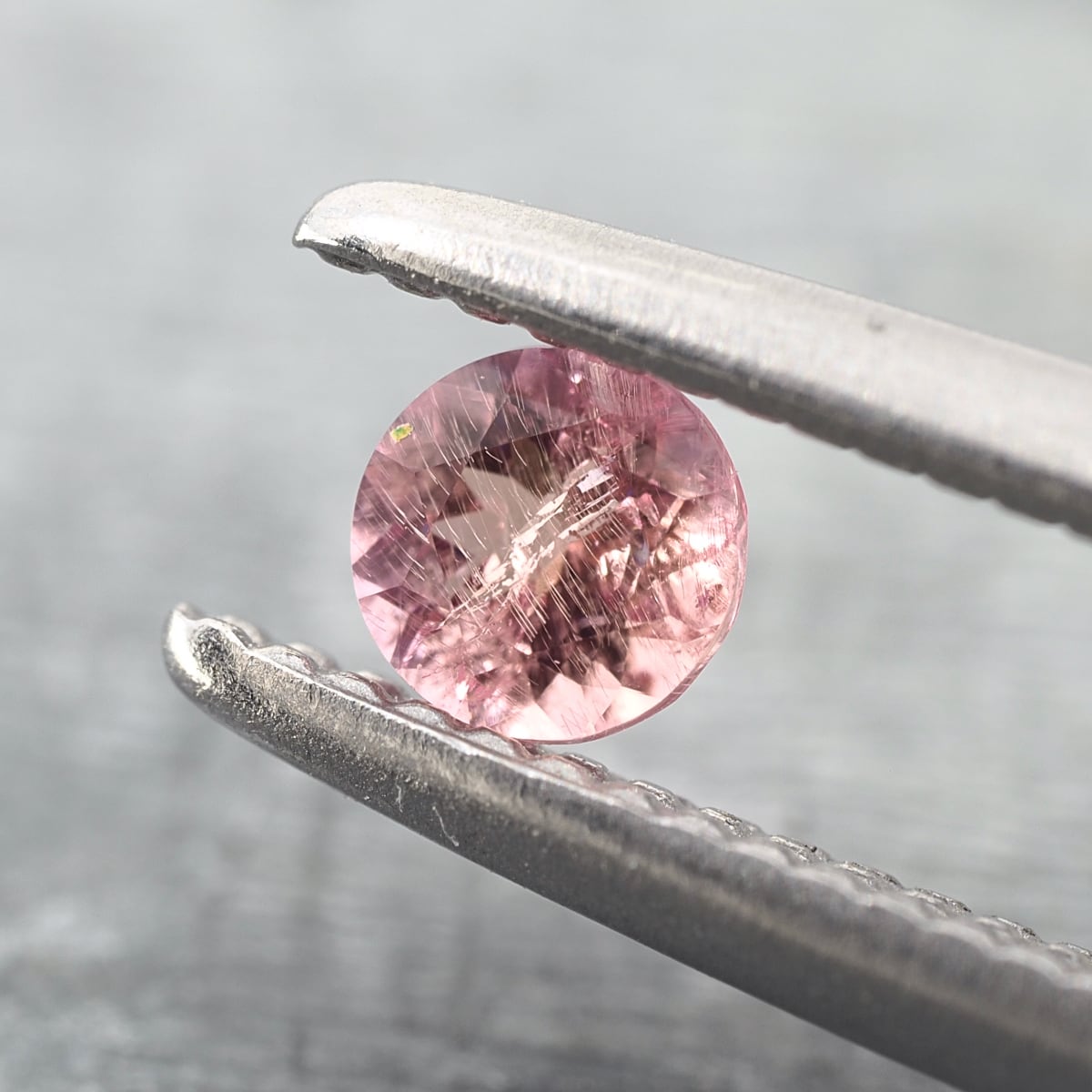 マクロレンズですと見ての通りインクルージョンが見受けられますが、しっかりとのったサーモンピンク色の良さ、そして肉眼で見た時やお仕立て時に眺めるキラメキを重視して買い付けた一石です。