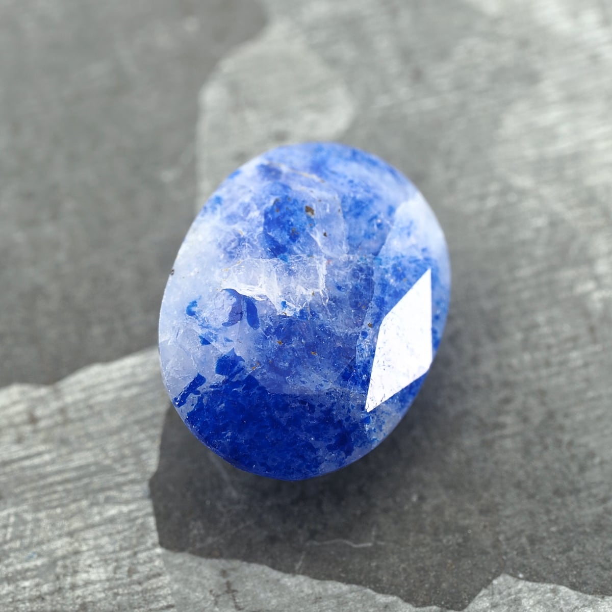 鮮やかなブルーを持つ青金石のラズライトを内包したソーダライトです。ソーダライトとのコントラストが効いておりラズライトが非常に鮮やかに映えます!