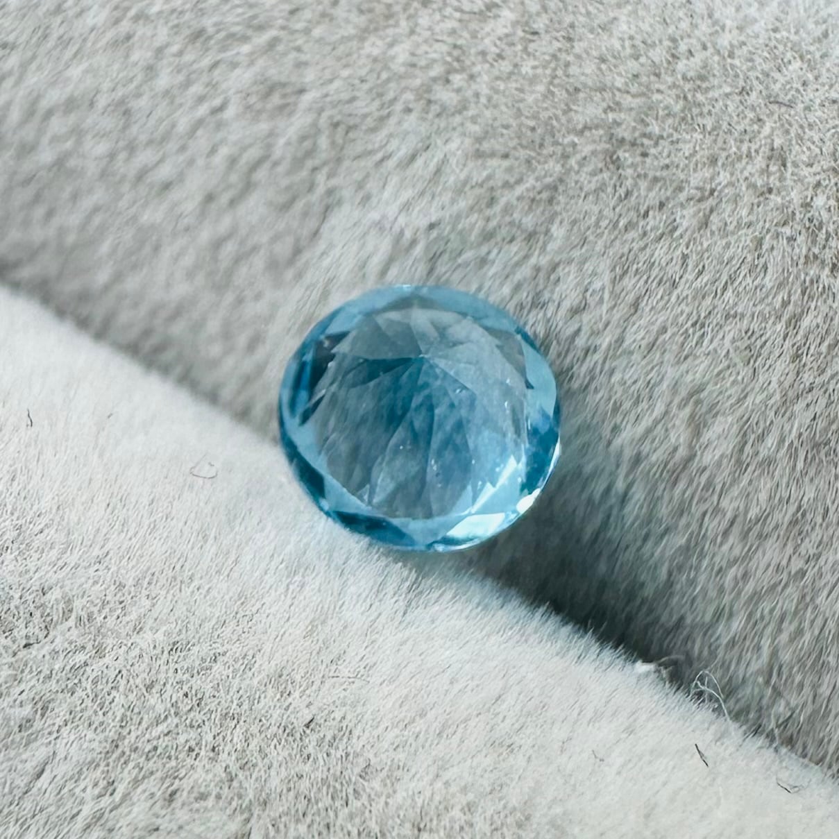 We selected a round-cut faceted apatite, a relatively uncommon shape among faceted apatites. No windows and excellent color retention!