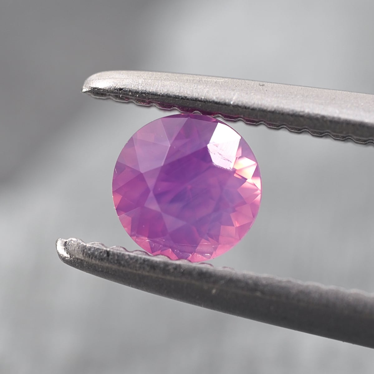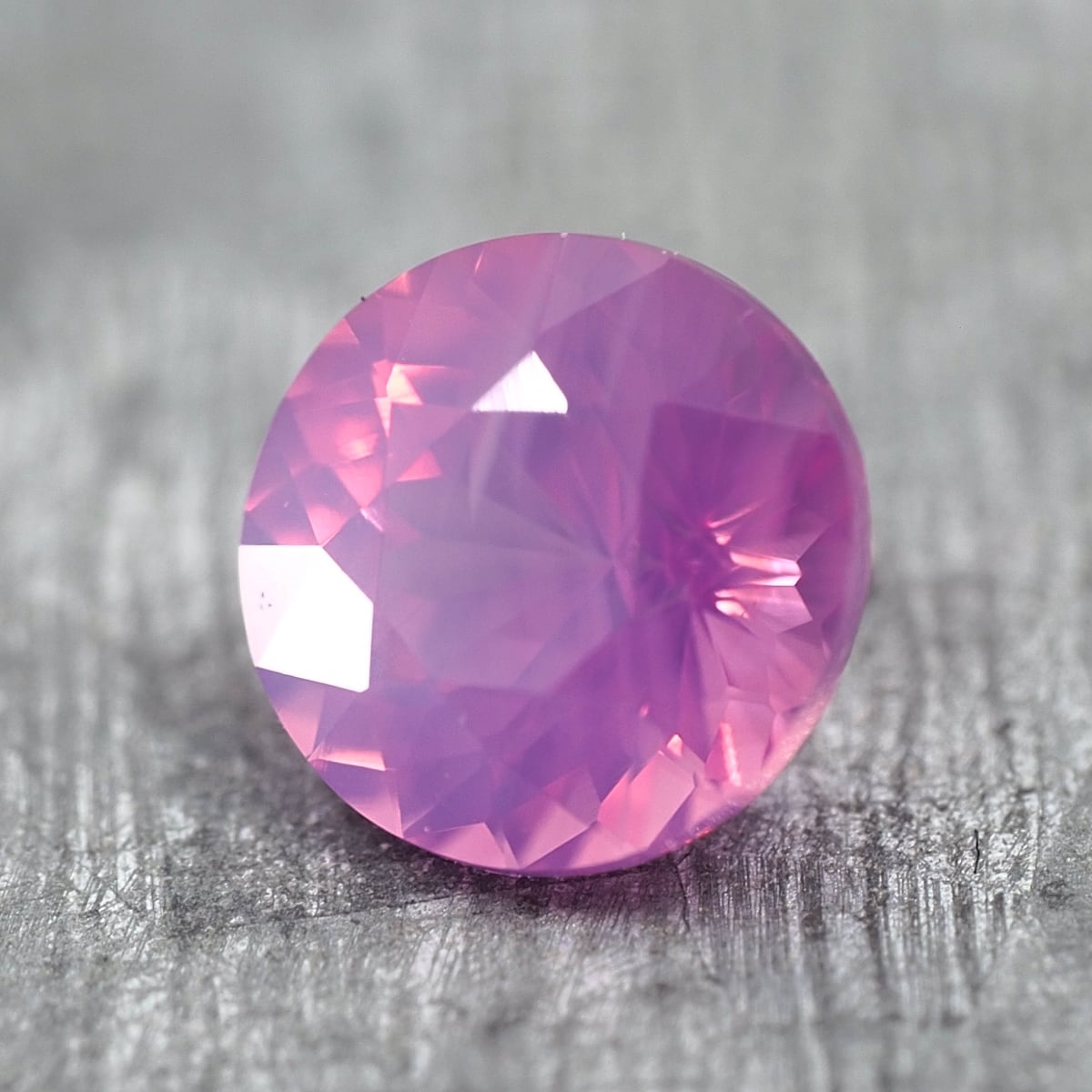 This silky sapphire is extremely popular in our store. Its main color is pink, and the purple and silk inclusions blend beautifully into the base color without overpowering it. It also exhibits very strong fluorescence.