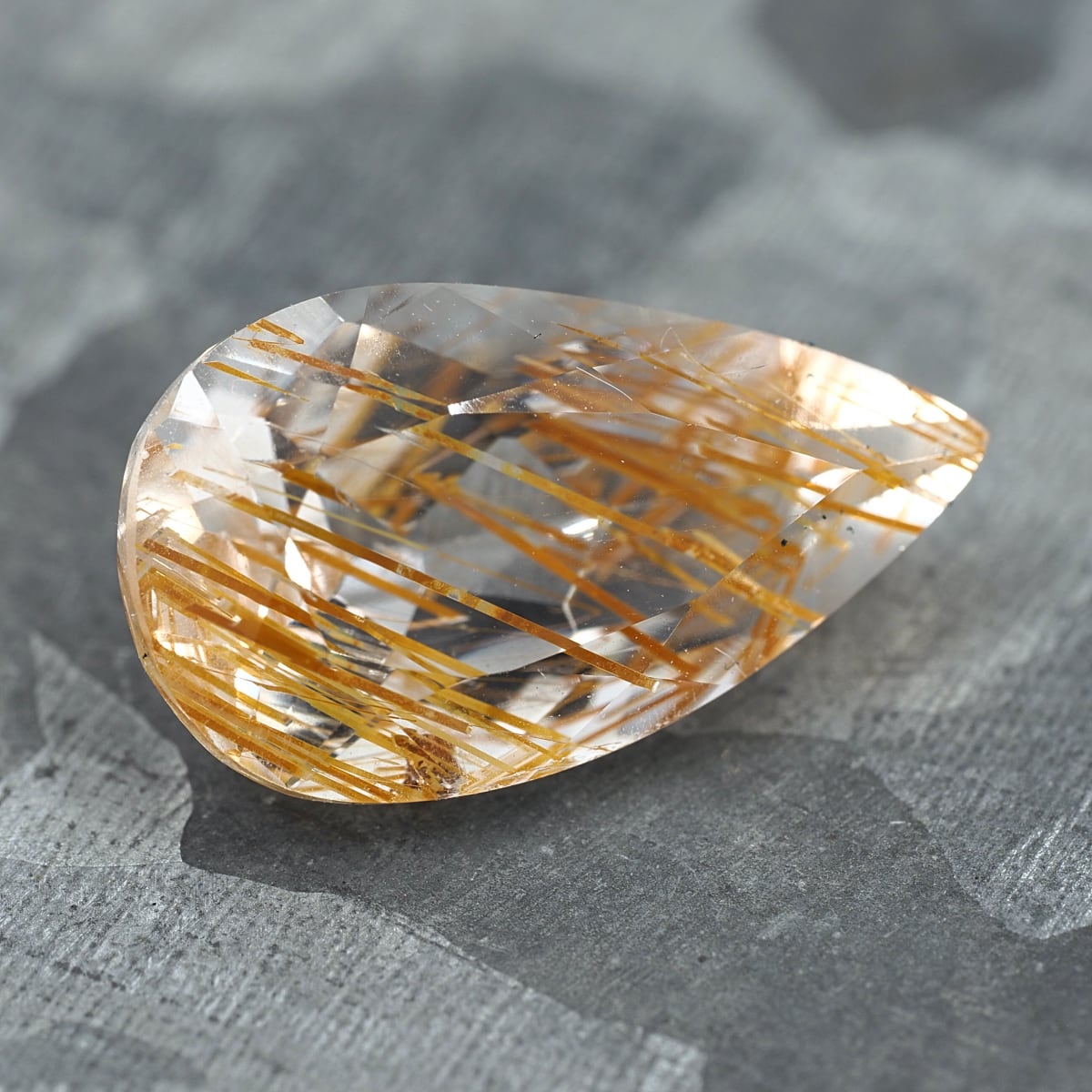 This is a rare and fascinating stone—not quartz crystal, but topaz containing rutile.