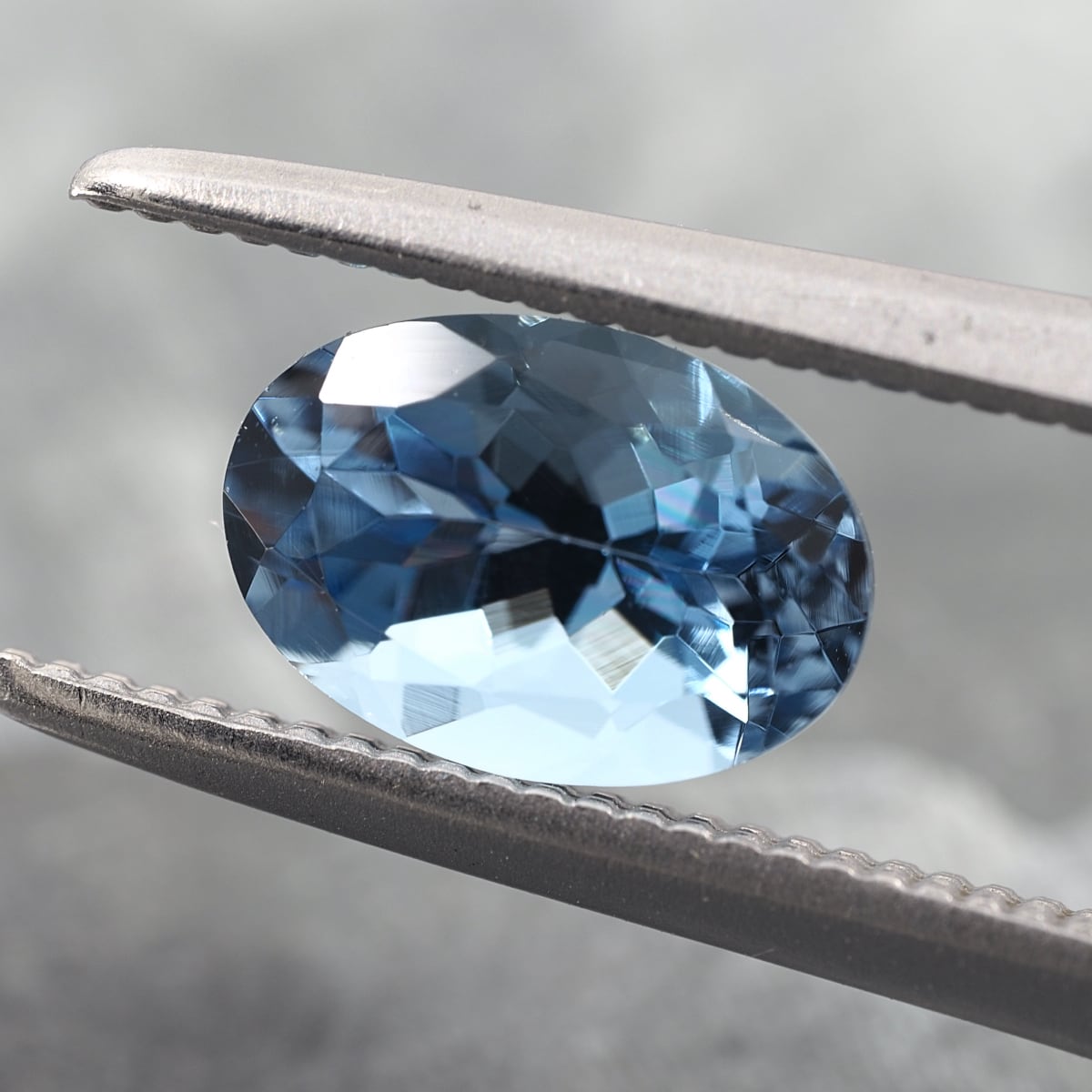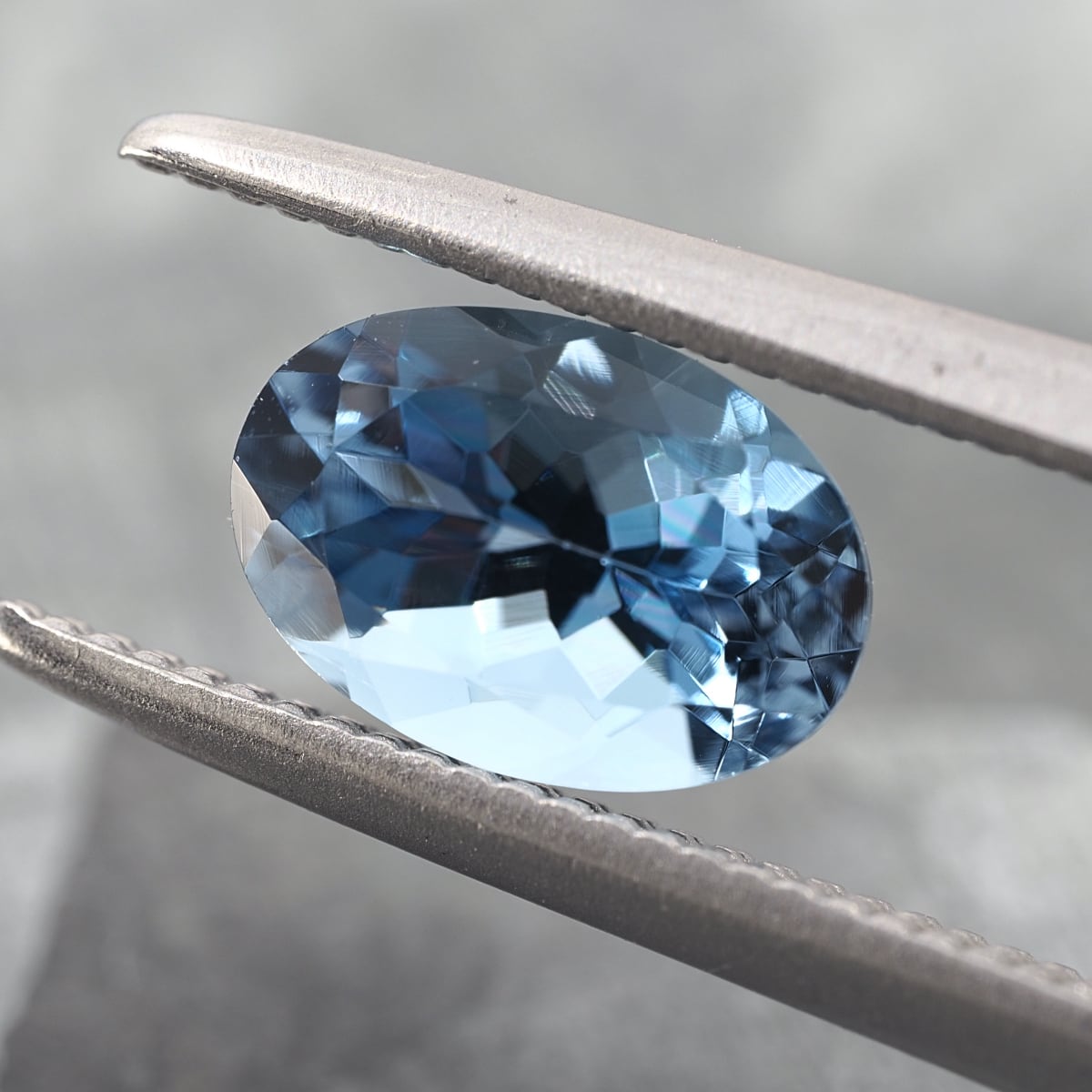 Cut from untreated rough from old stock in Nigeria's Kigali region, this is a clean aquamarine possessing an exceptionally strong blue hue. Against the white background in the latter part, the blue appears even more intense.