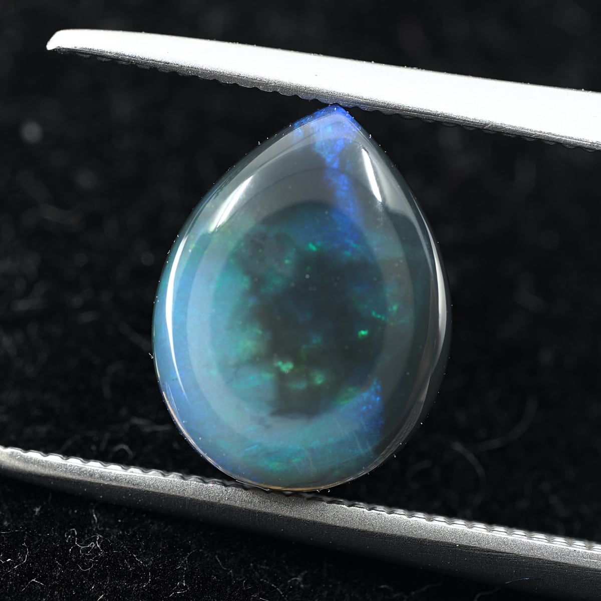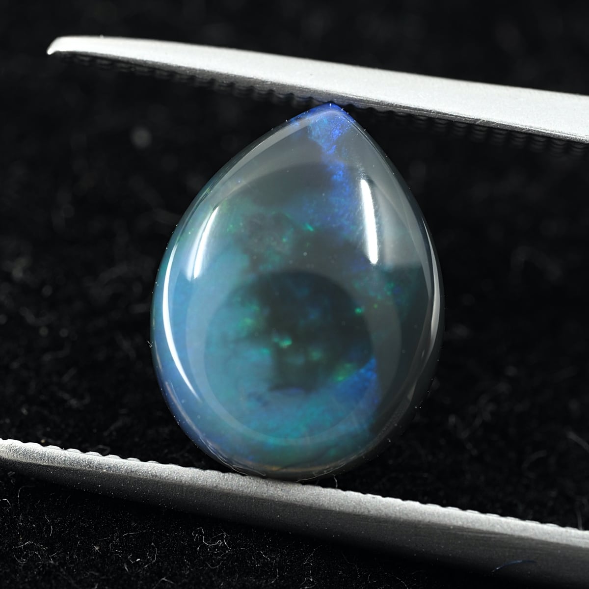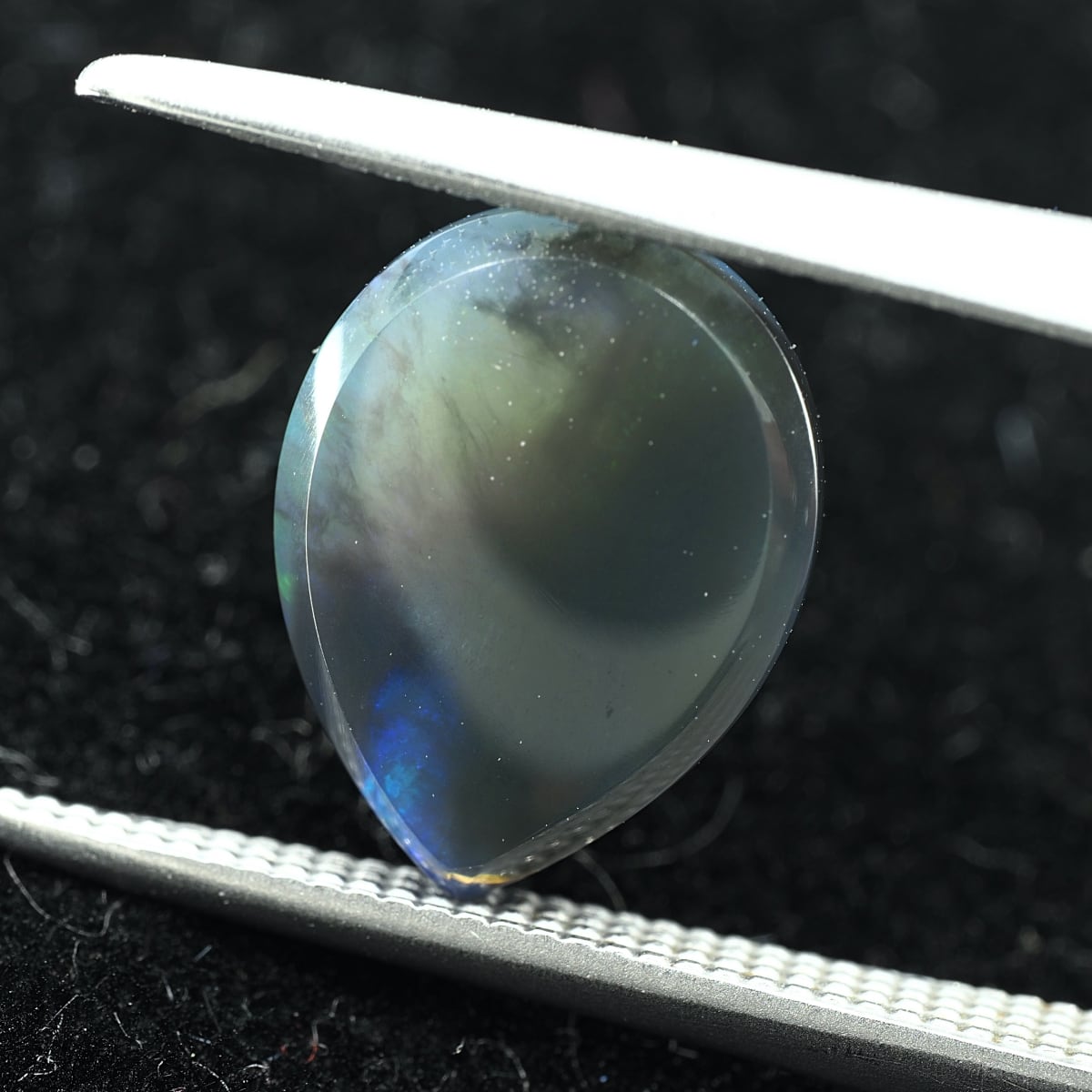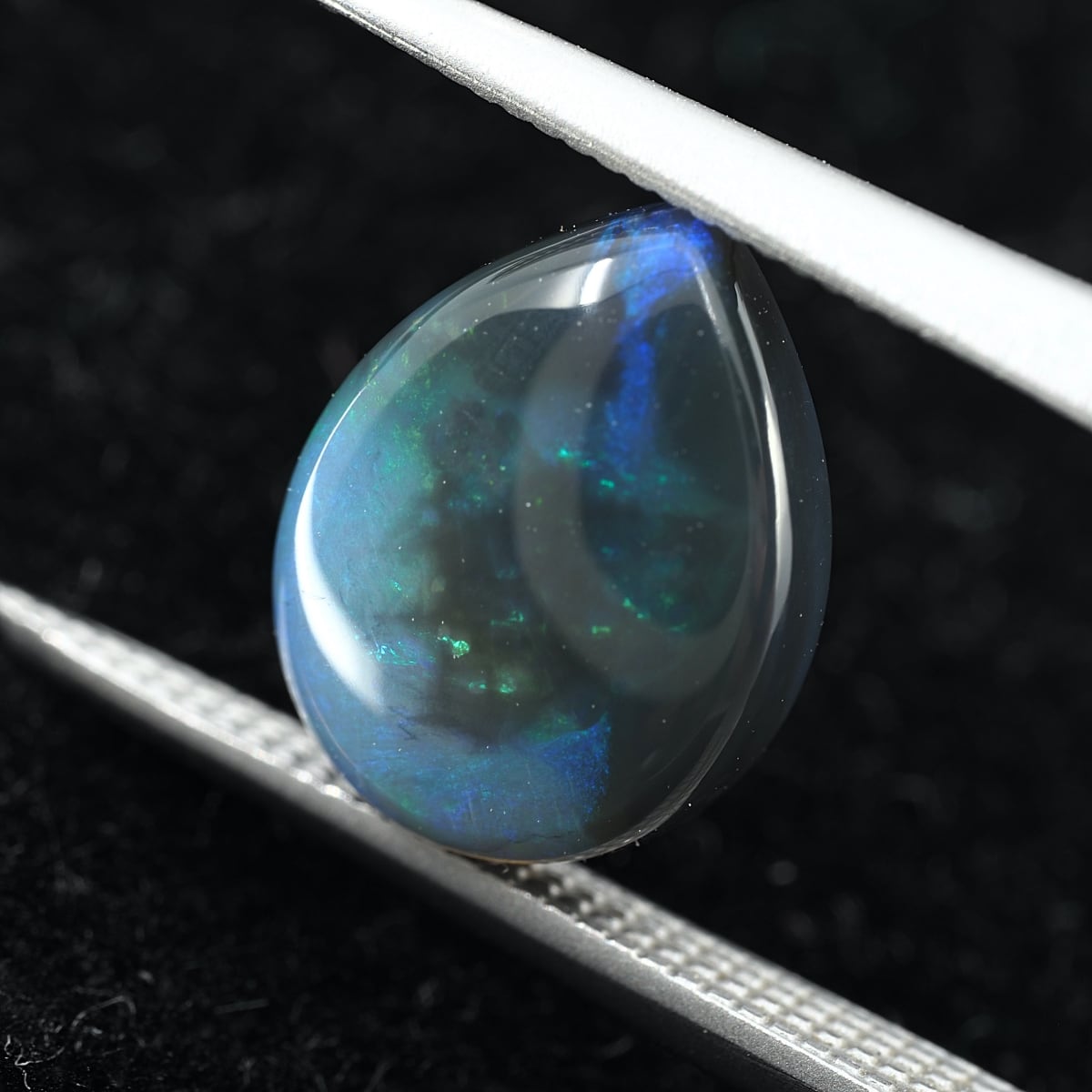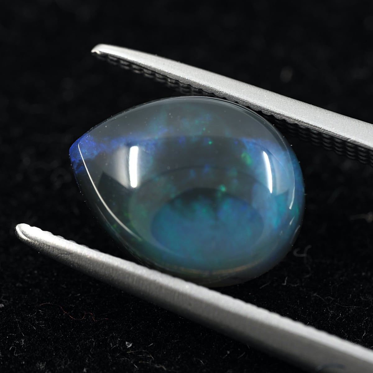 地色がグレー〜ブラックのセミブラックカラー。もちろん貼り合わせや処理のものではなくナチュラルなブラックオパール。遊色はブルーとグリーンオンリーでピーコック(孔雀)カラーのシックな個体です。数あるオパールの中でも最も珍重されるブラックオパールの唯一無二の雰囲気をお楽しみください。