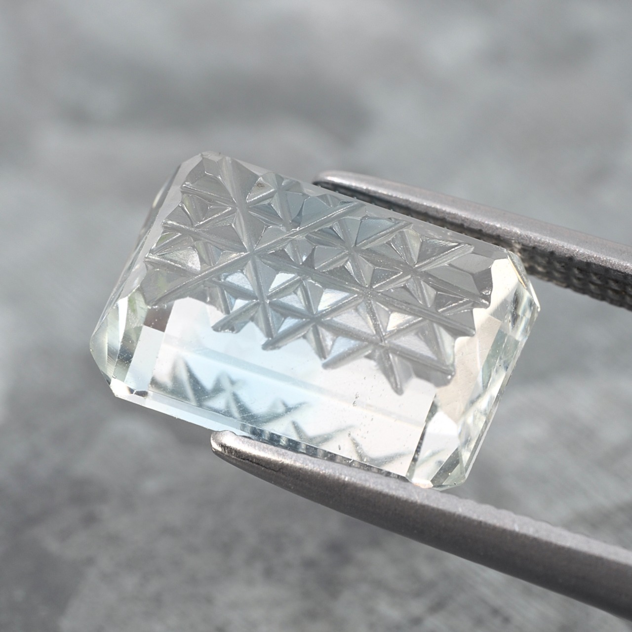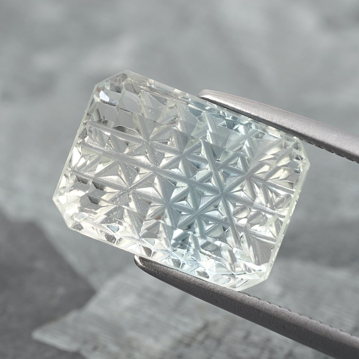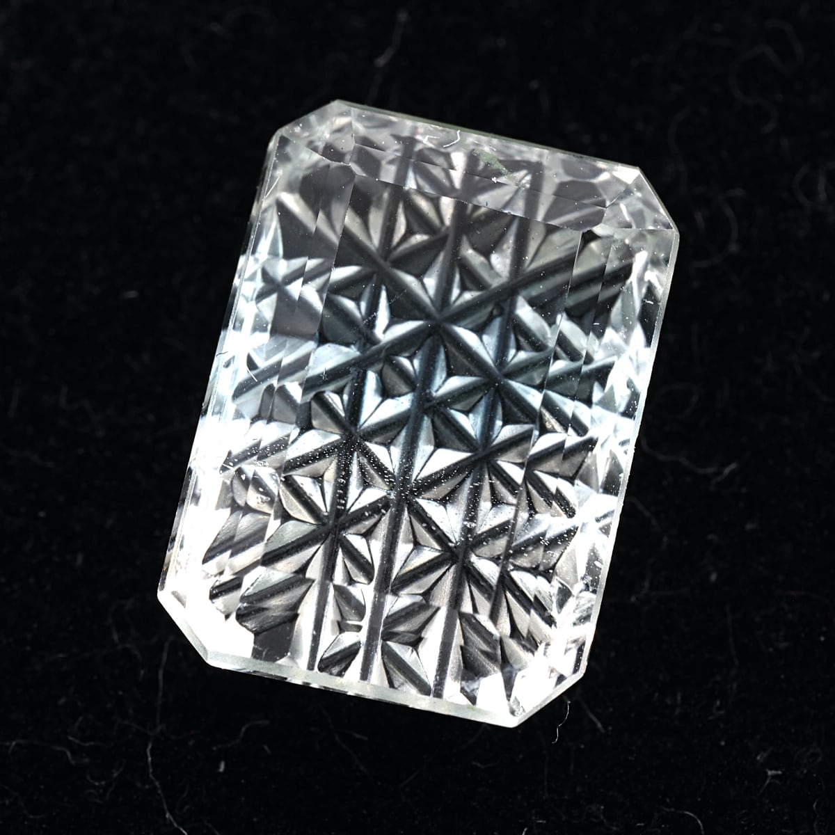 This particular piece is a rather rare bicolor variety of topaz, further enhanced with the Kōshū Kiseishi Kiriko cutting technique (featuring a net-like pattern). Simply stunning!