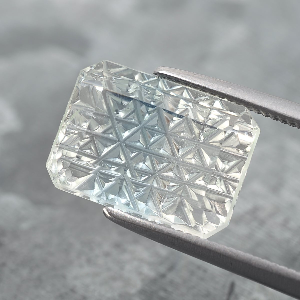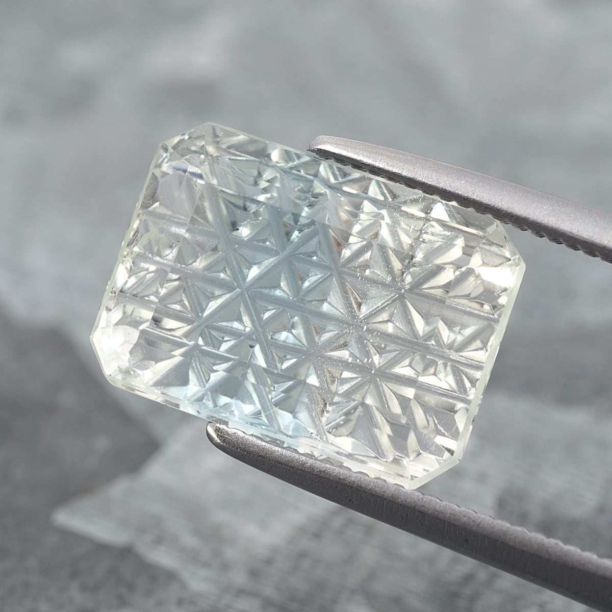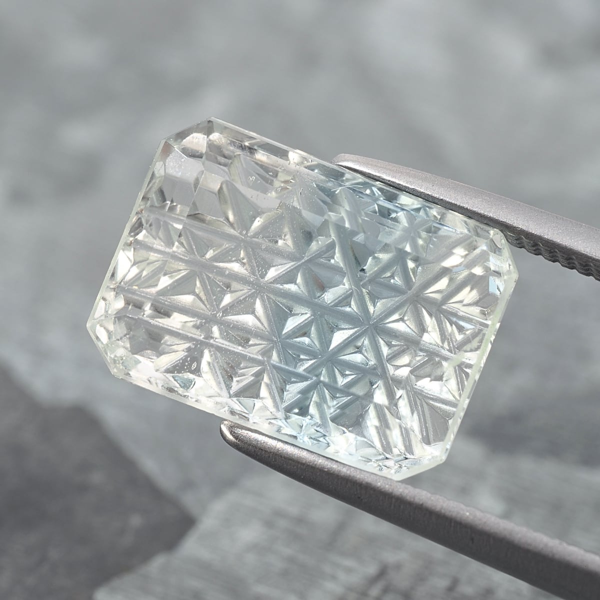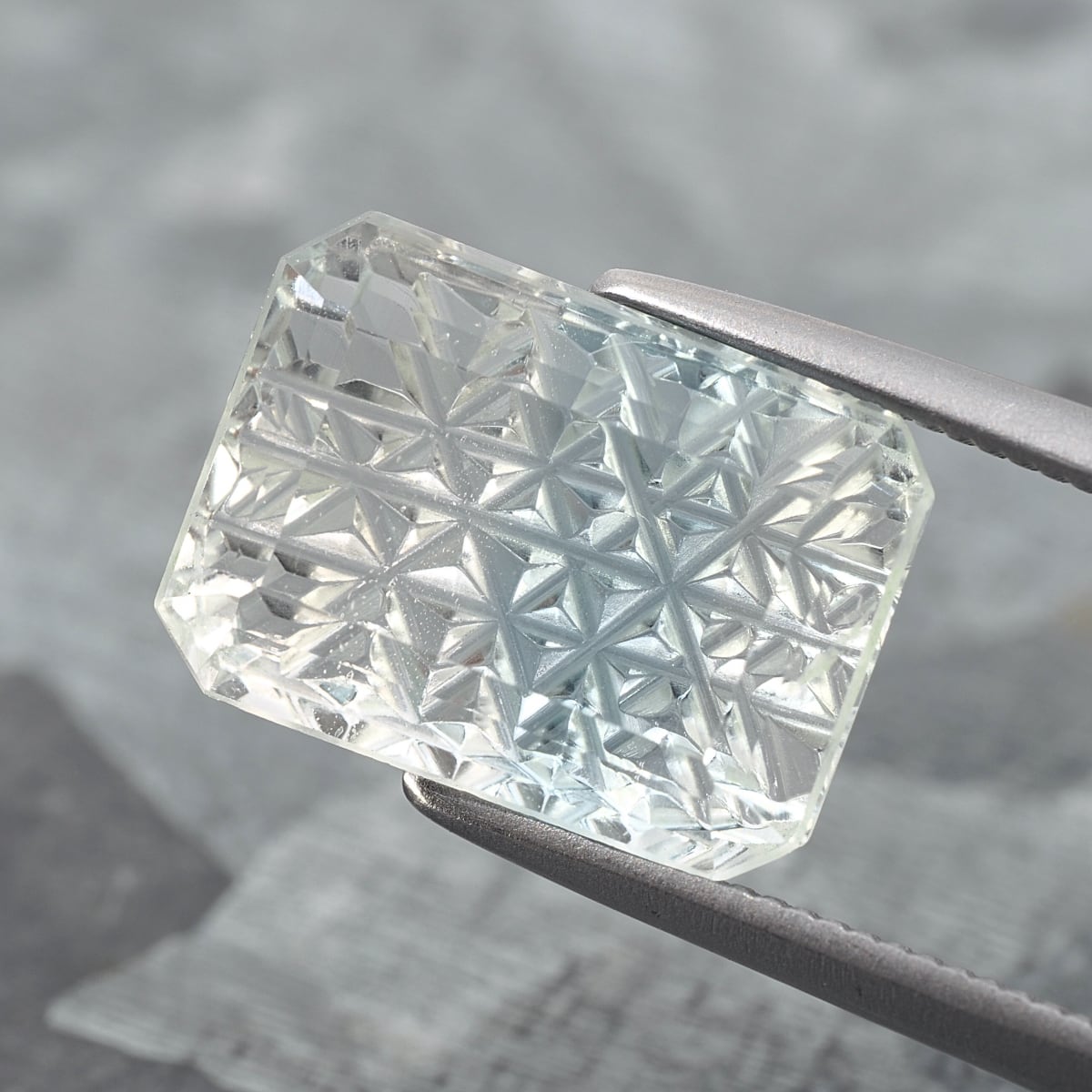 This particular piece is a rather rare bicolor variety of topaz, further enhanced with the Kōshū Kiseishi Kiriko cutting technique (featuring a net-like pattern). Simply stunning!