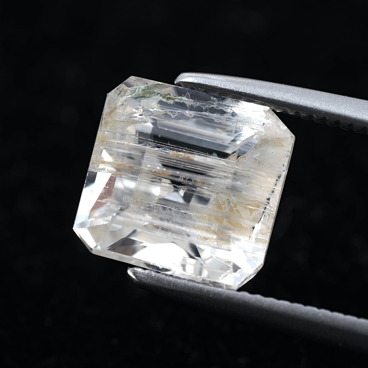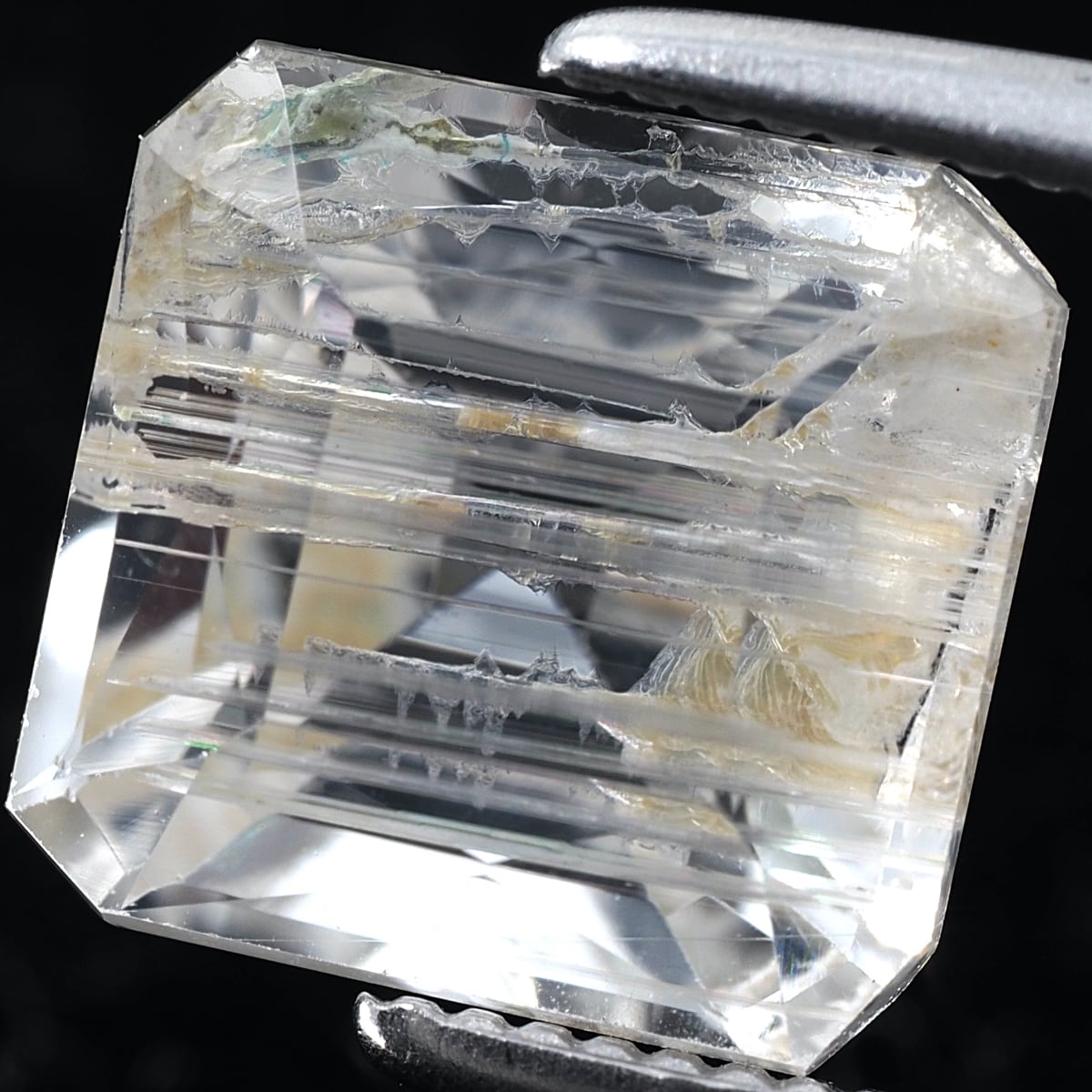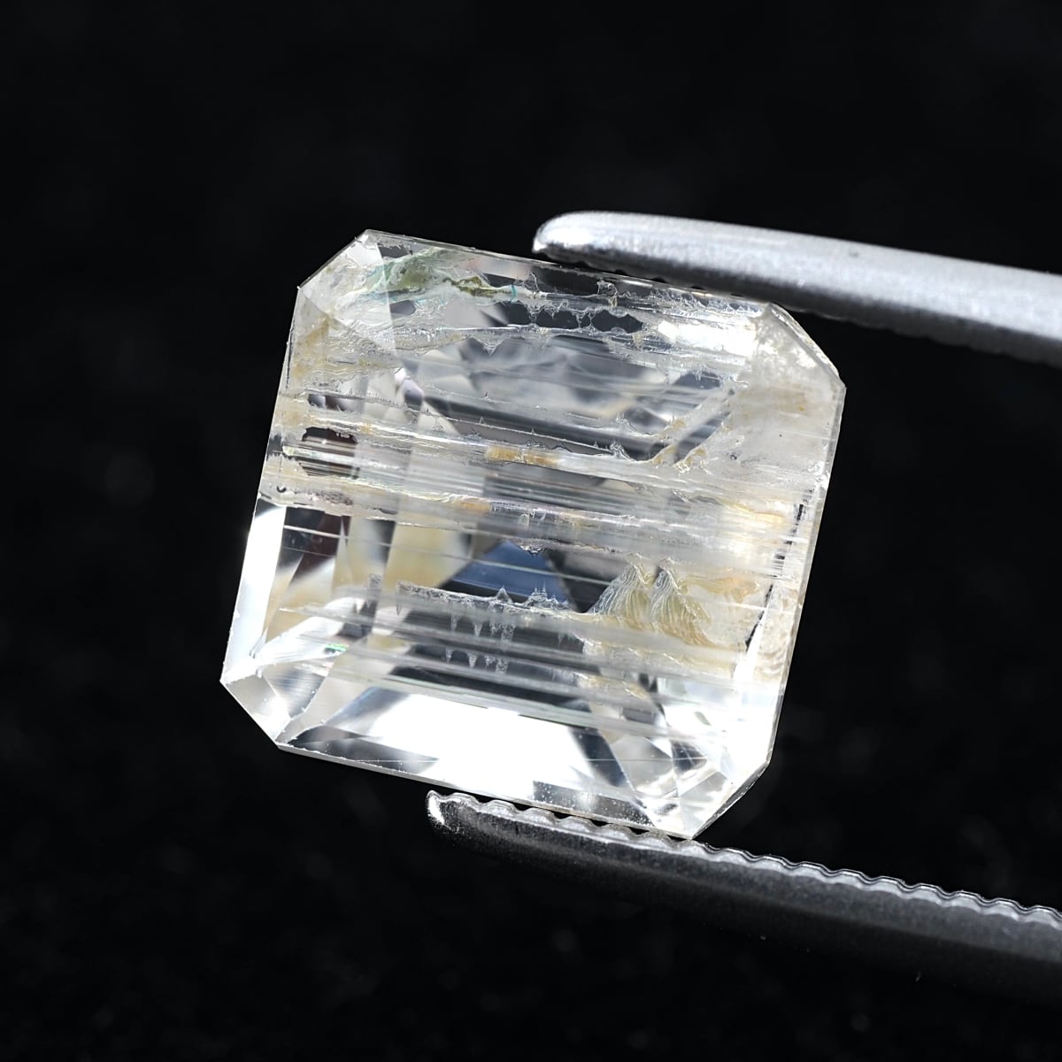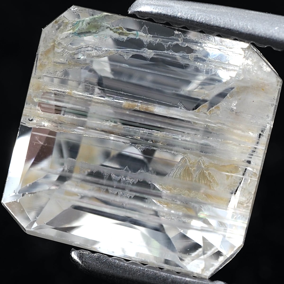To the naked eye, it sparkles and shimmers, but under a loupe, you can see distinctive, thorn-like inclusions. While labeled as rutile, these are most likely tube inclusions. It's a type I rarely encounter even at purchasing events.