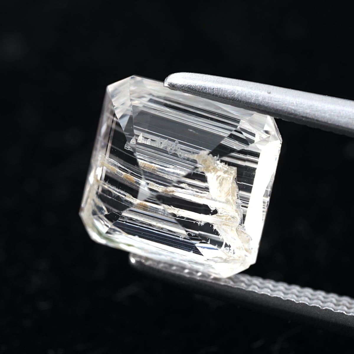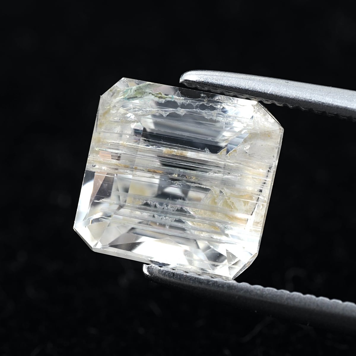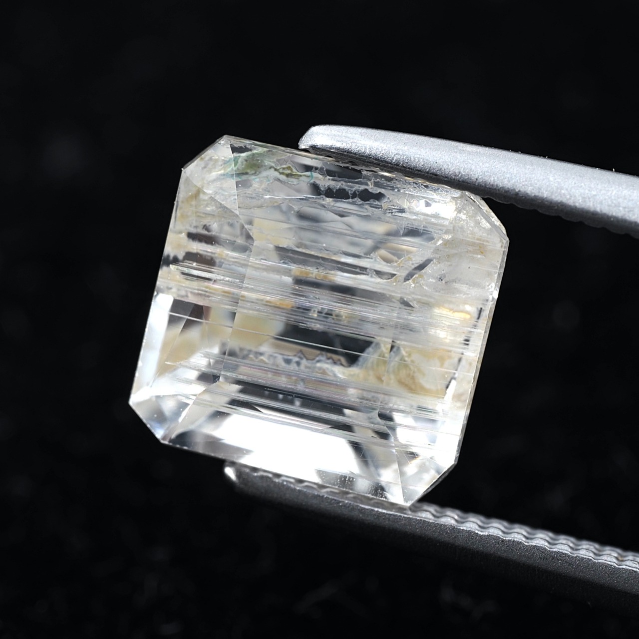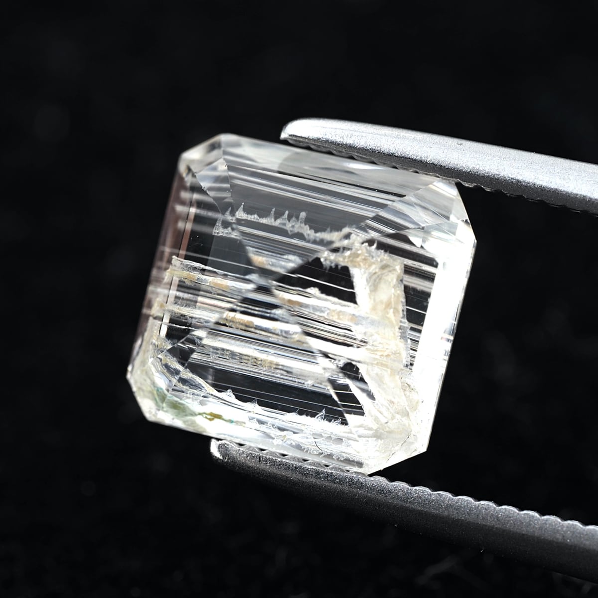To the naked eye, it sparkles and shimmers, but under a loupe, you can see distinctive, thorn-like inclusions. While labeled as rutile, these are most likely tube inclusions. It's a type I rarely encounter even at purchasing events.
