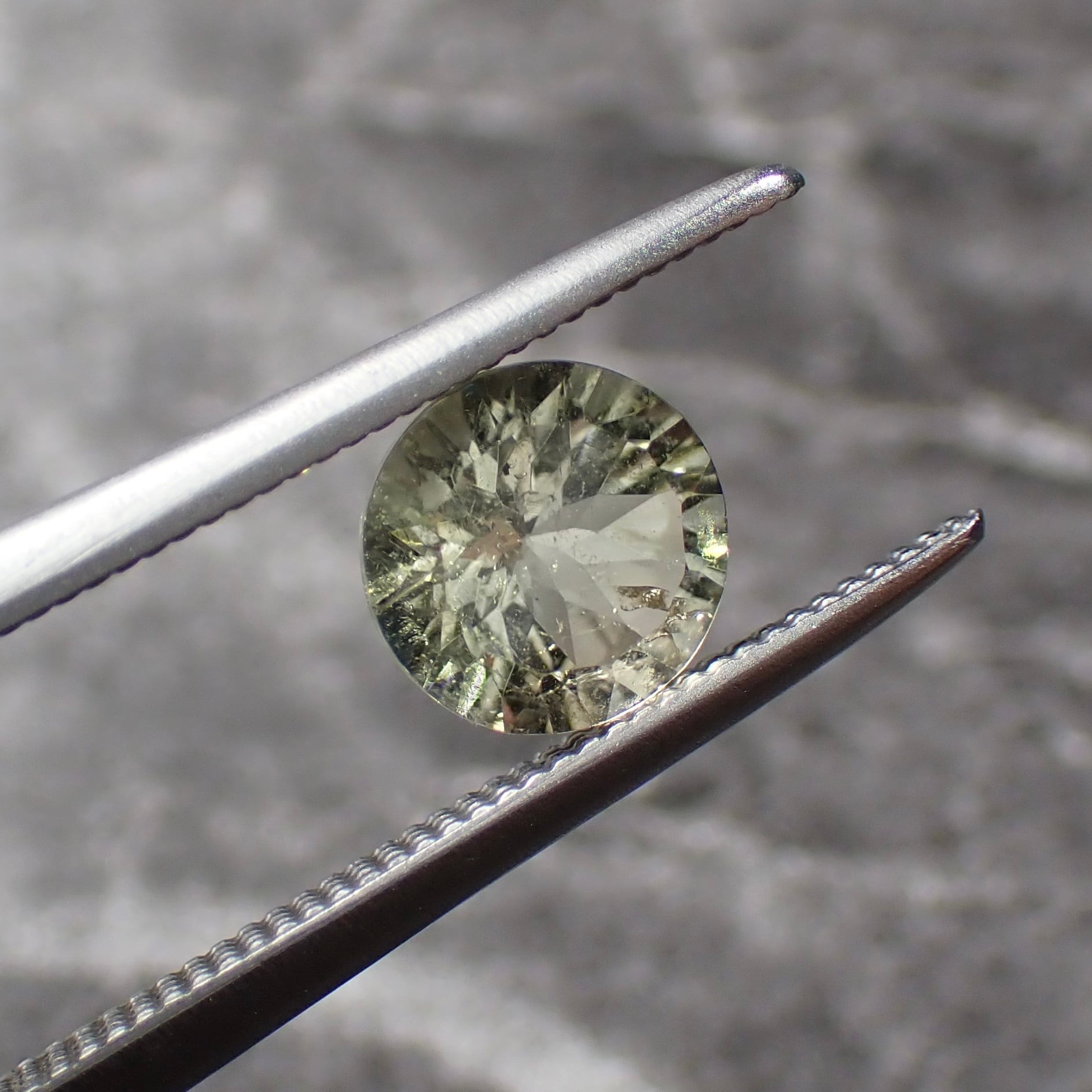 A bicolor stone combining yellow and colorless, featuring the popular round facet cut. Its sparkling champagne gold color is beautiful.