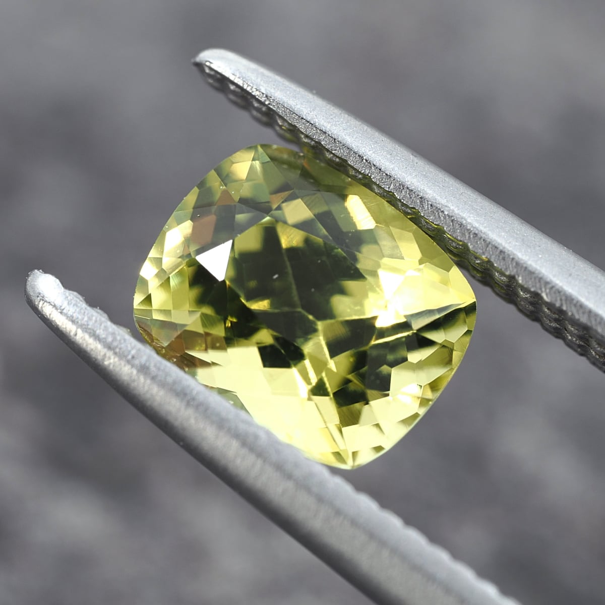 This is a parrot chrysoberyl, considered a rare variety of beryl. While the standard variety comes from India, this one is from Madagascar. The brilliance created by the interplay of neon yellow and green is truly one of a kind!