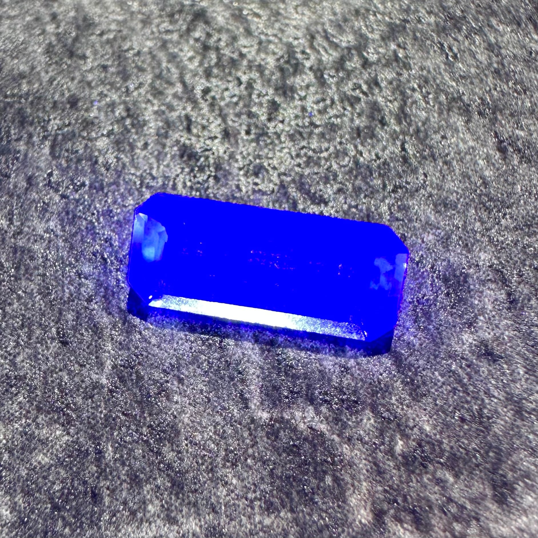 This is a rare, strongly fluorescent specimen from Zimbabwe. It has a mint green, transparent base color, and although the photo appears bright, it fluoresces in silky blue.
