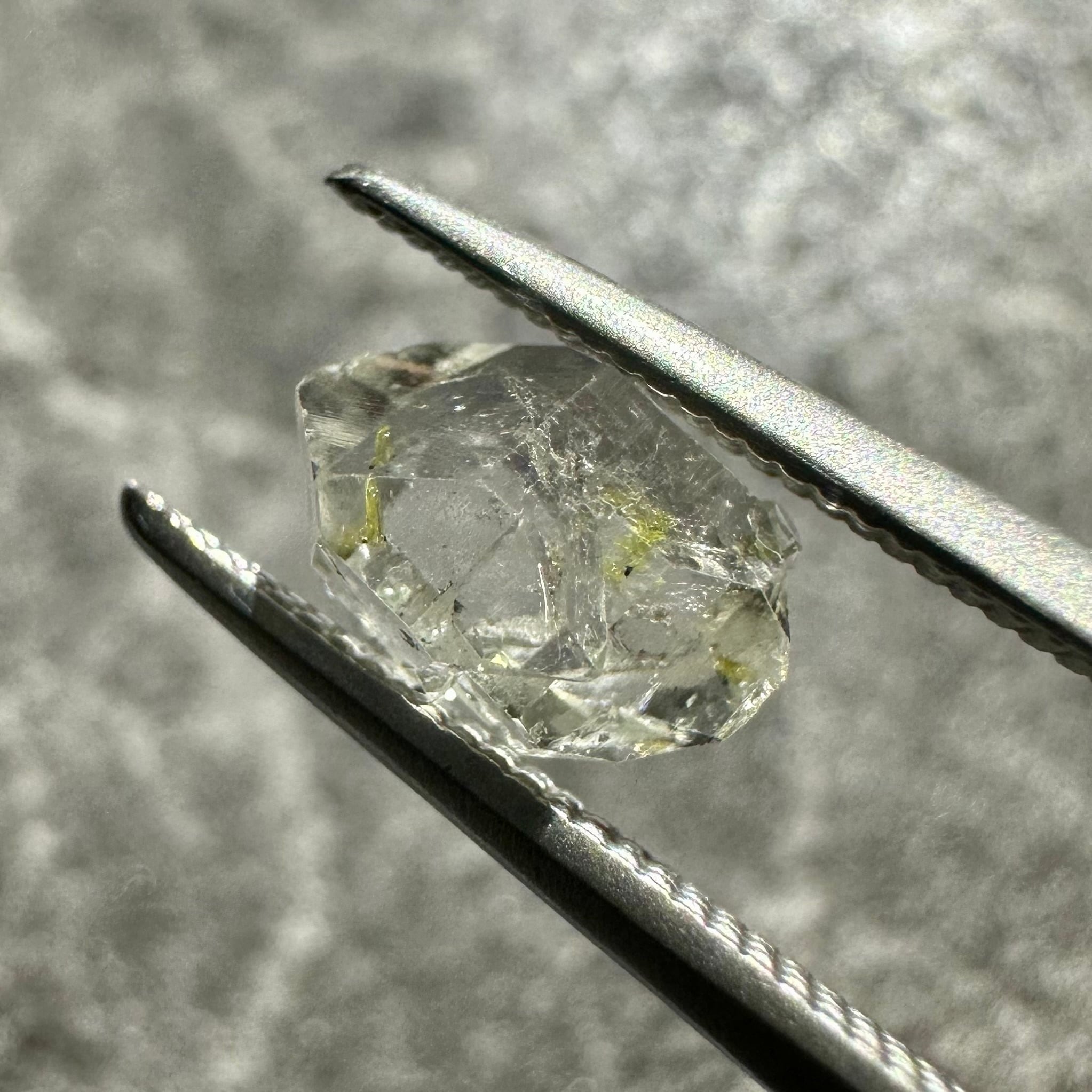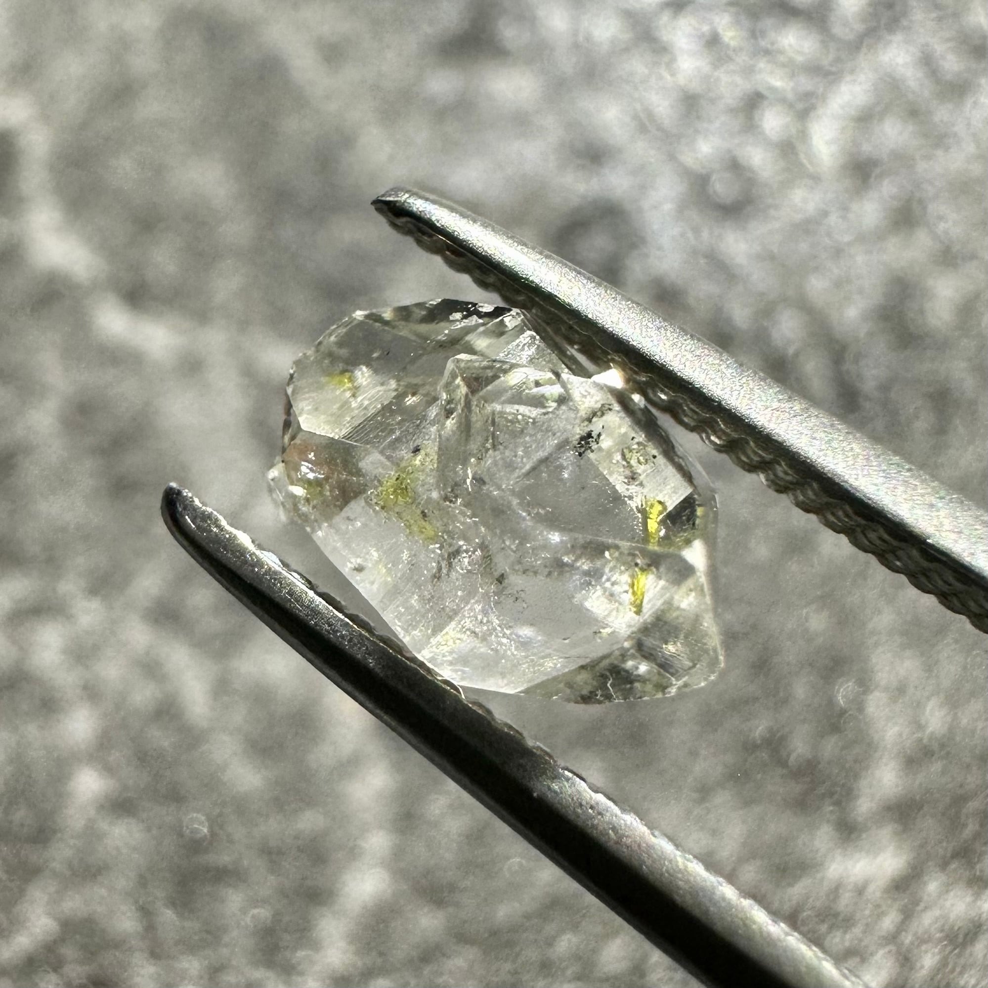 The most striking feature of oil-in-quartz is the oil that beautifully fluoresces under black light. The sight of scattered oil droplets glowing neon blue within transparent crystal is truly fantastical.