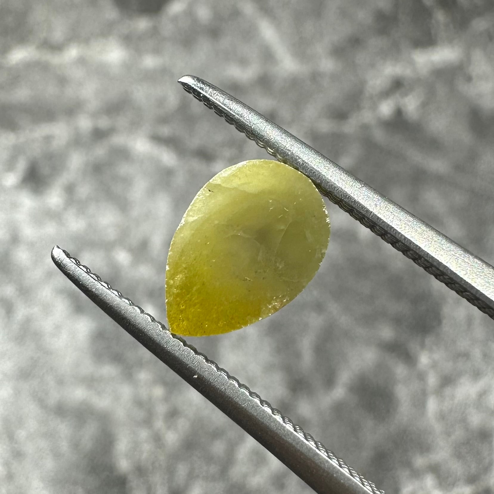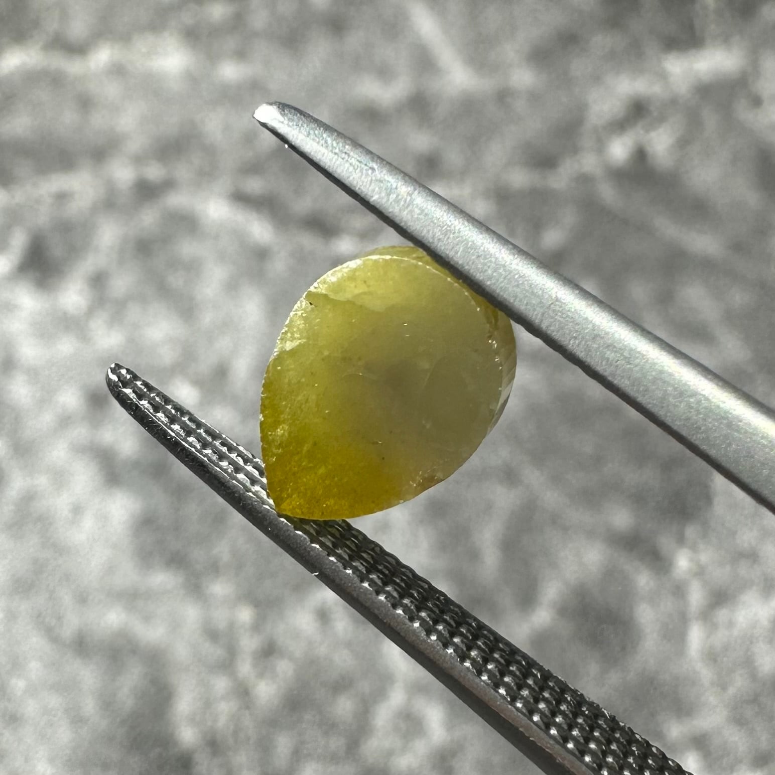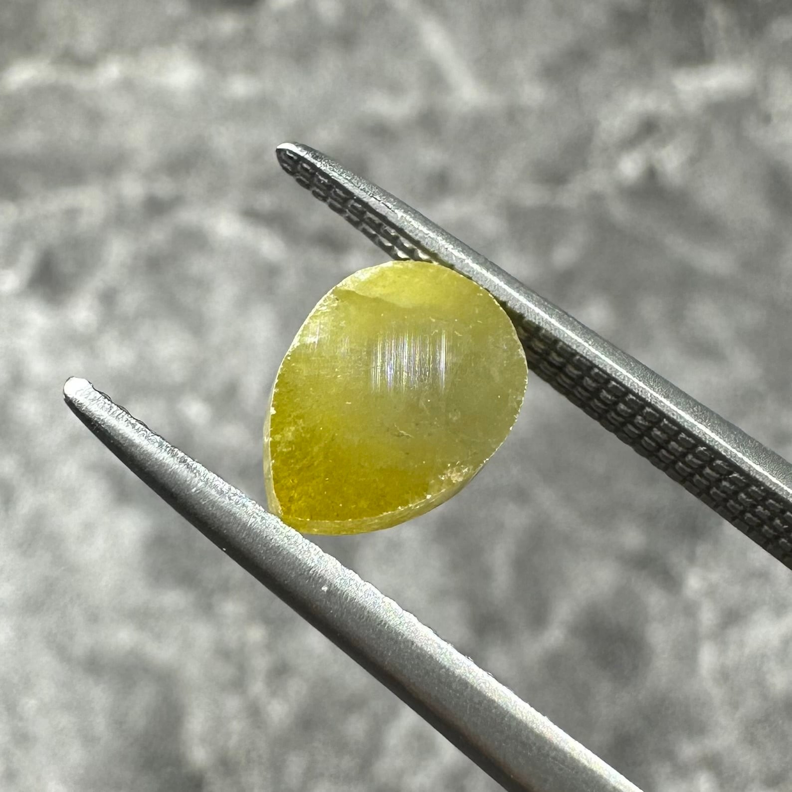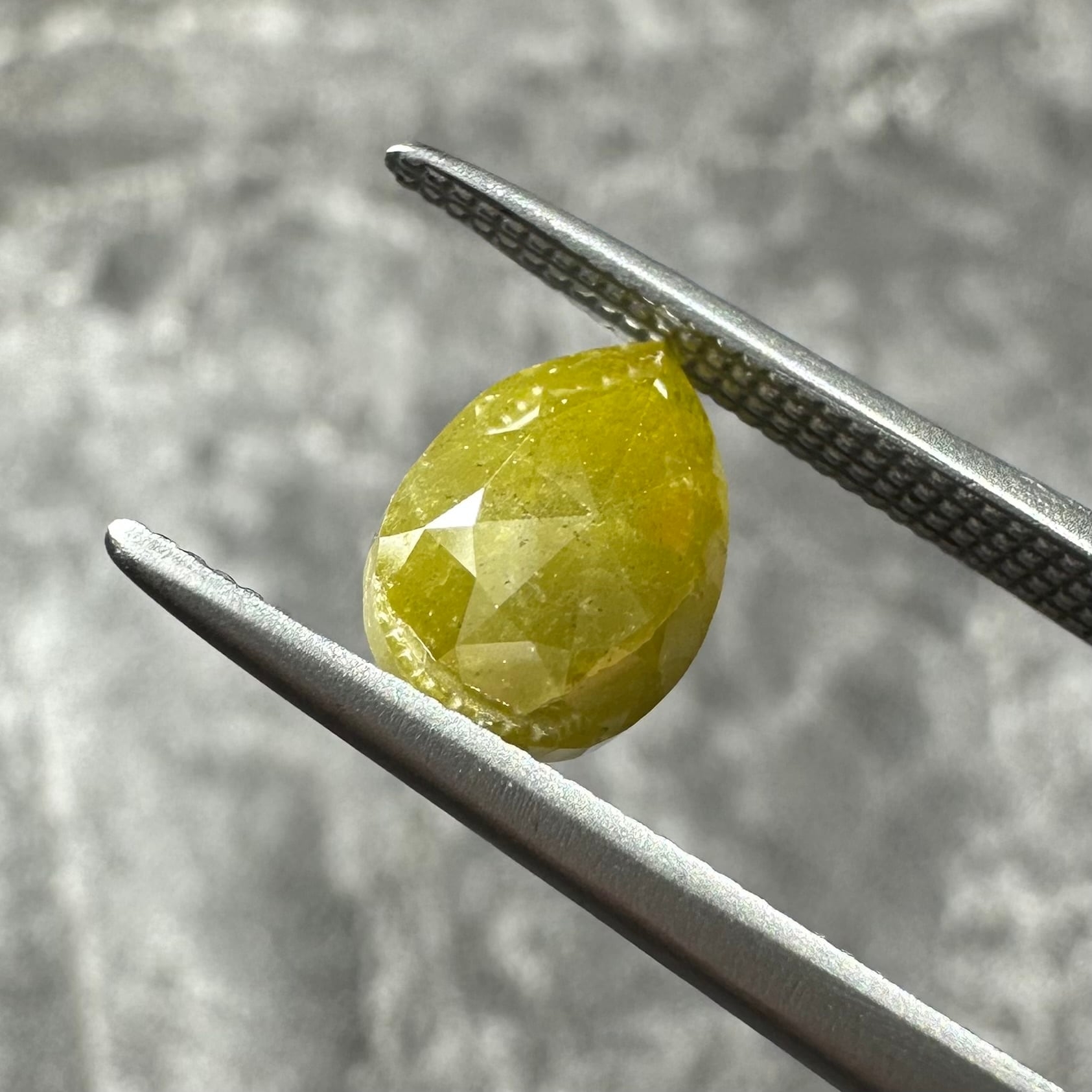 ローズカットらしい裏側が真っ平のフラットバックで、表面は少し変形のローズカットが施されています。色合いはマスタード&オリーブグリーンのような独特のカラー。キャラアップです!