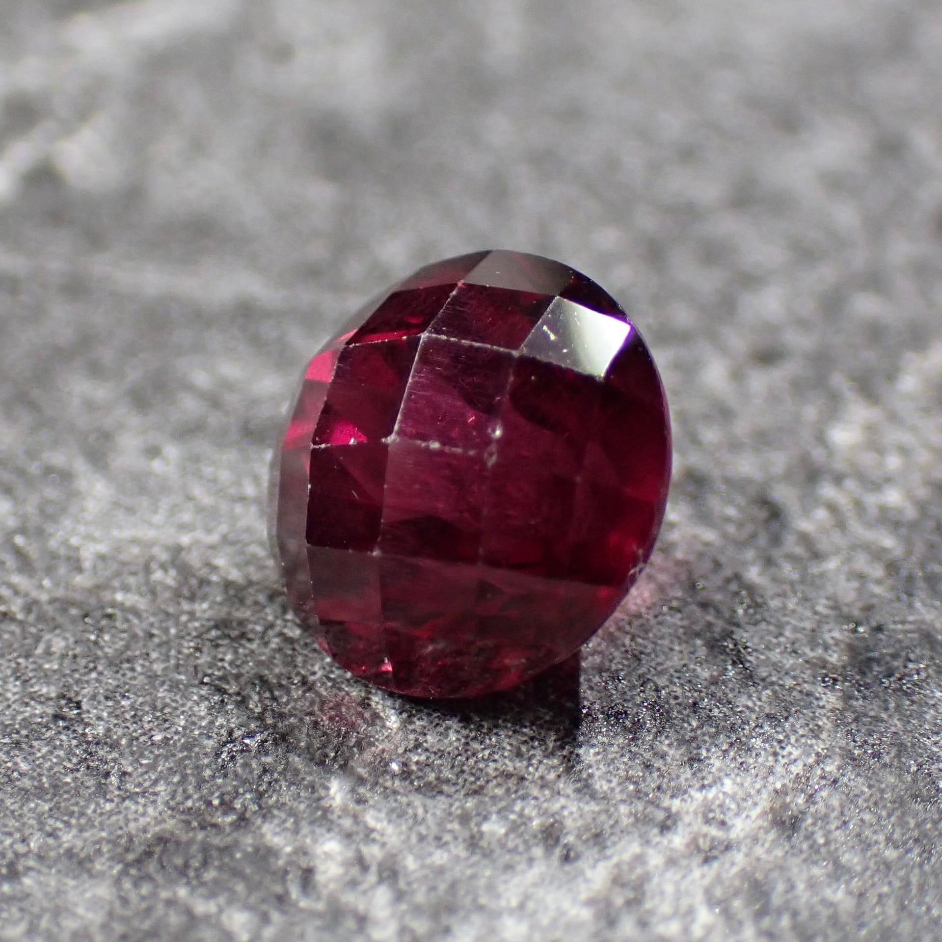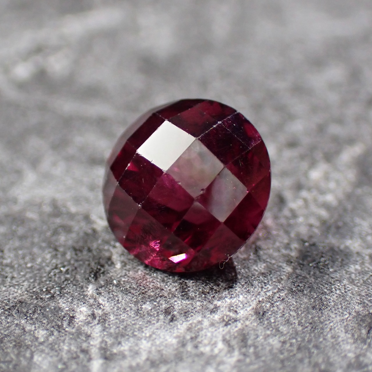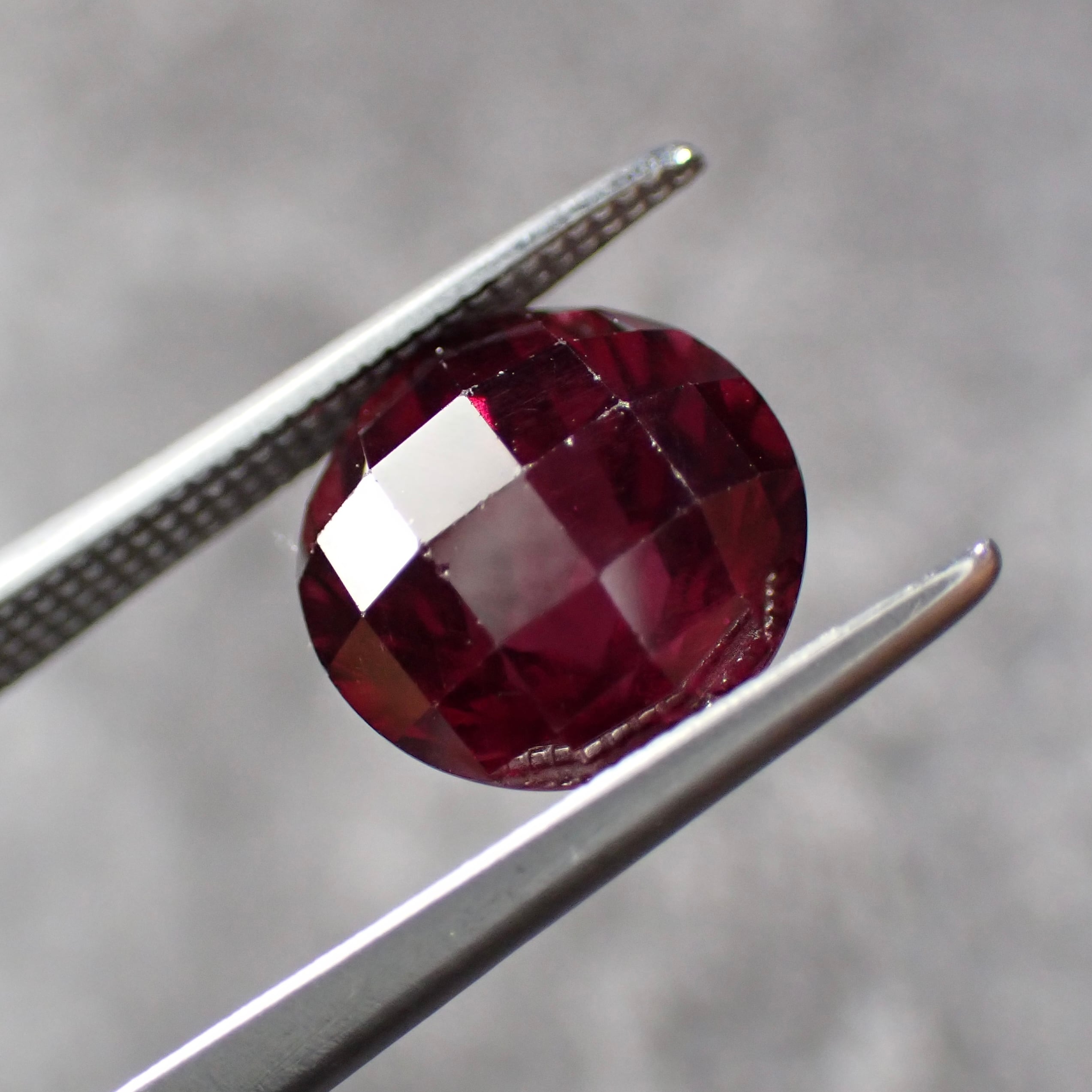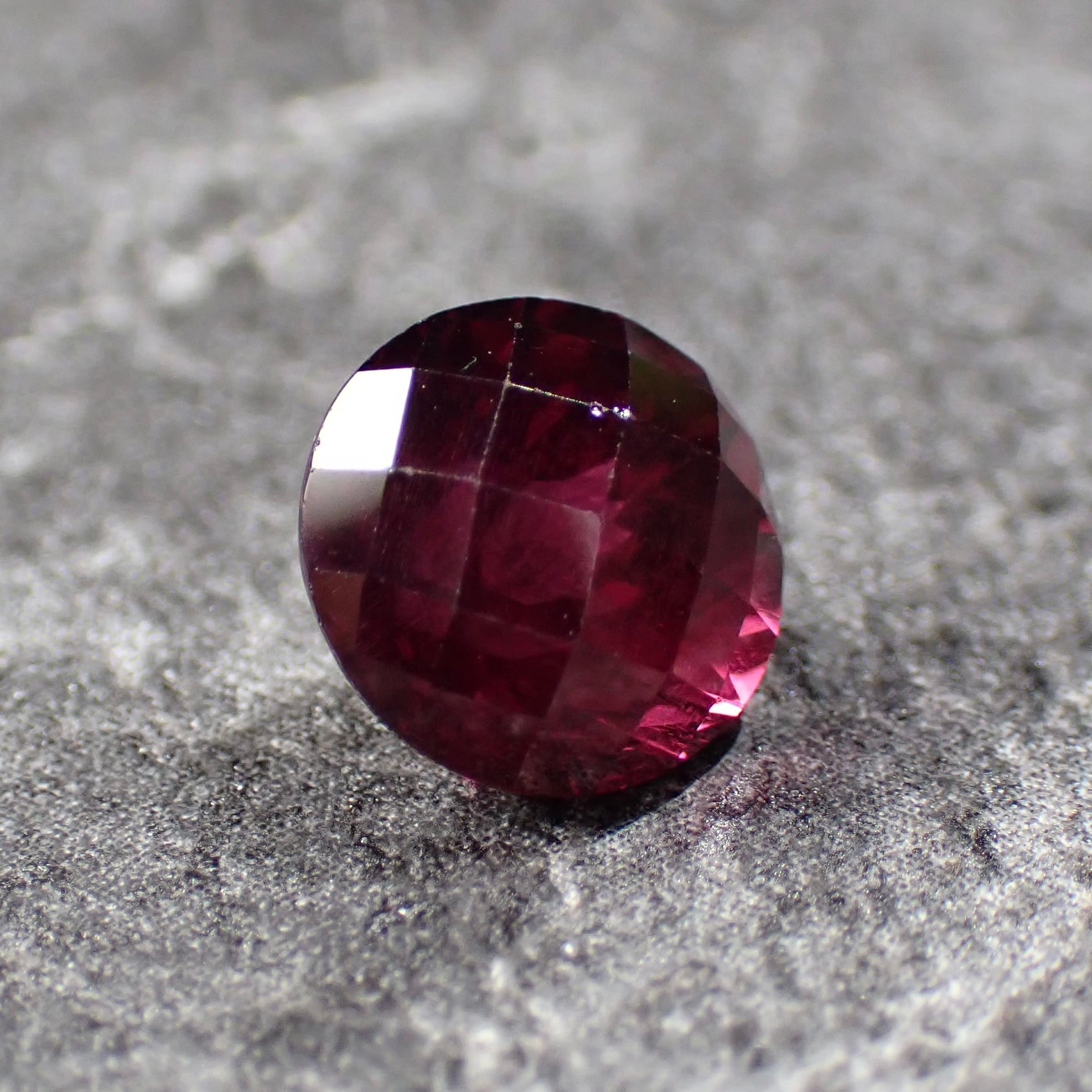 光の角度でライトなパープルカラーが見えるのと、チェッカーボードカットを施した個体です。