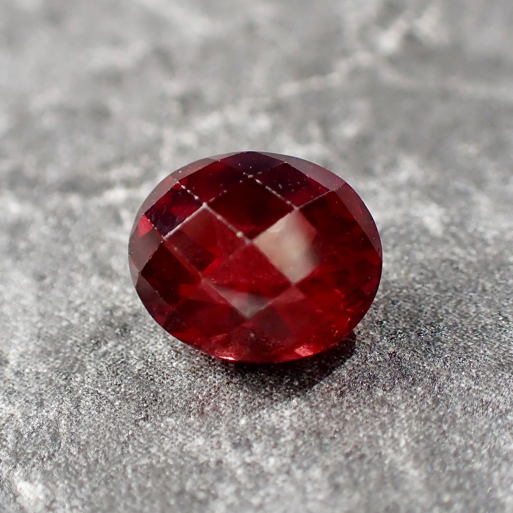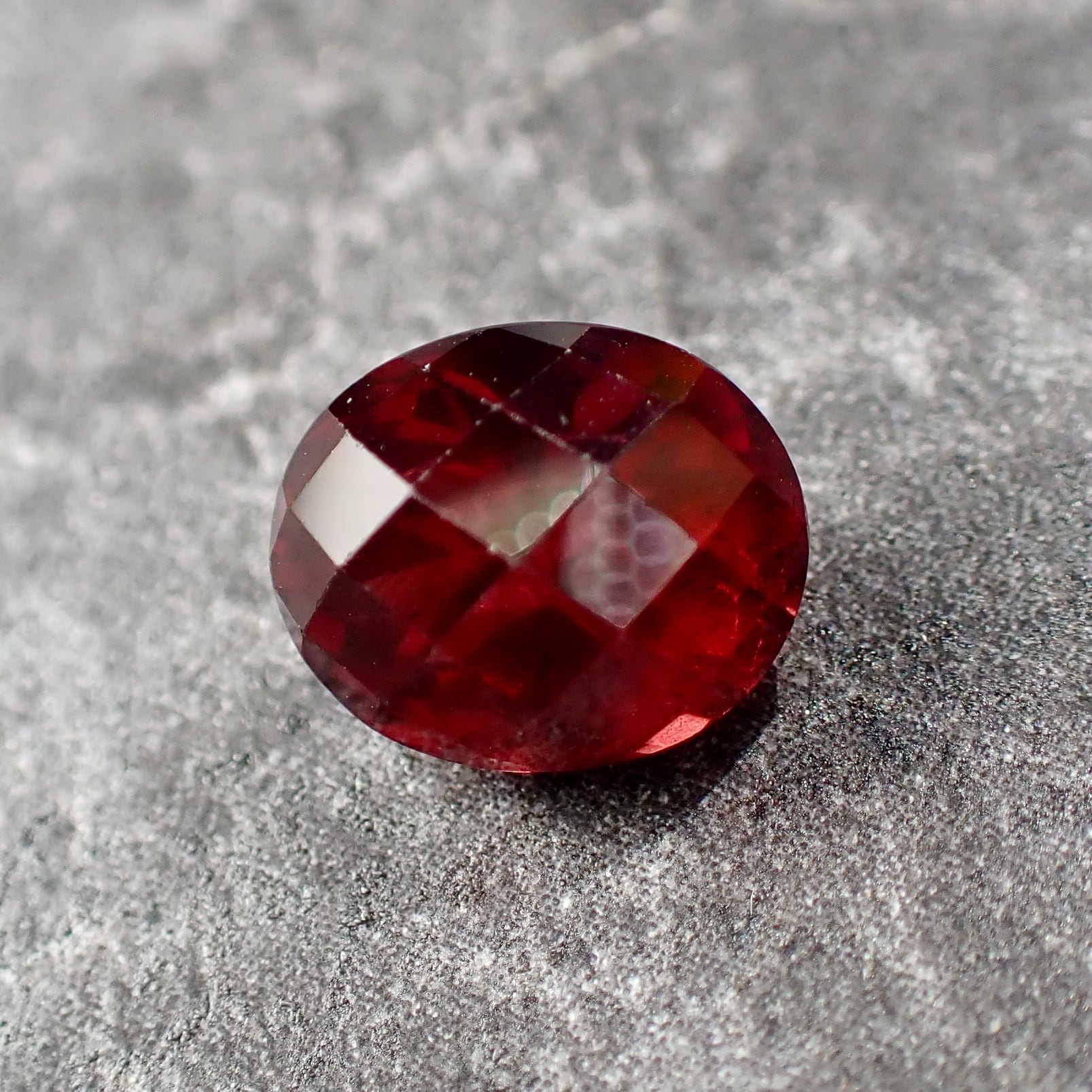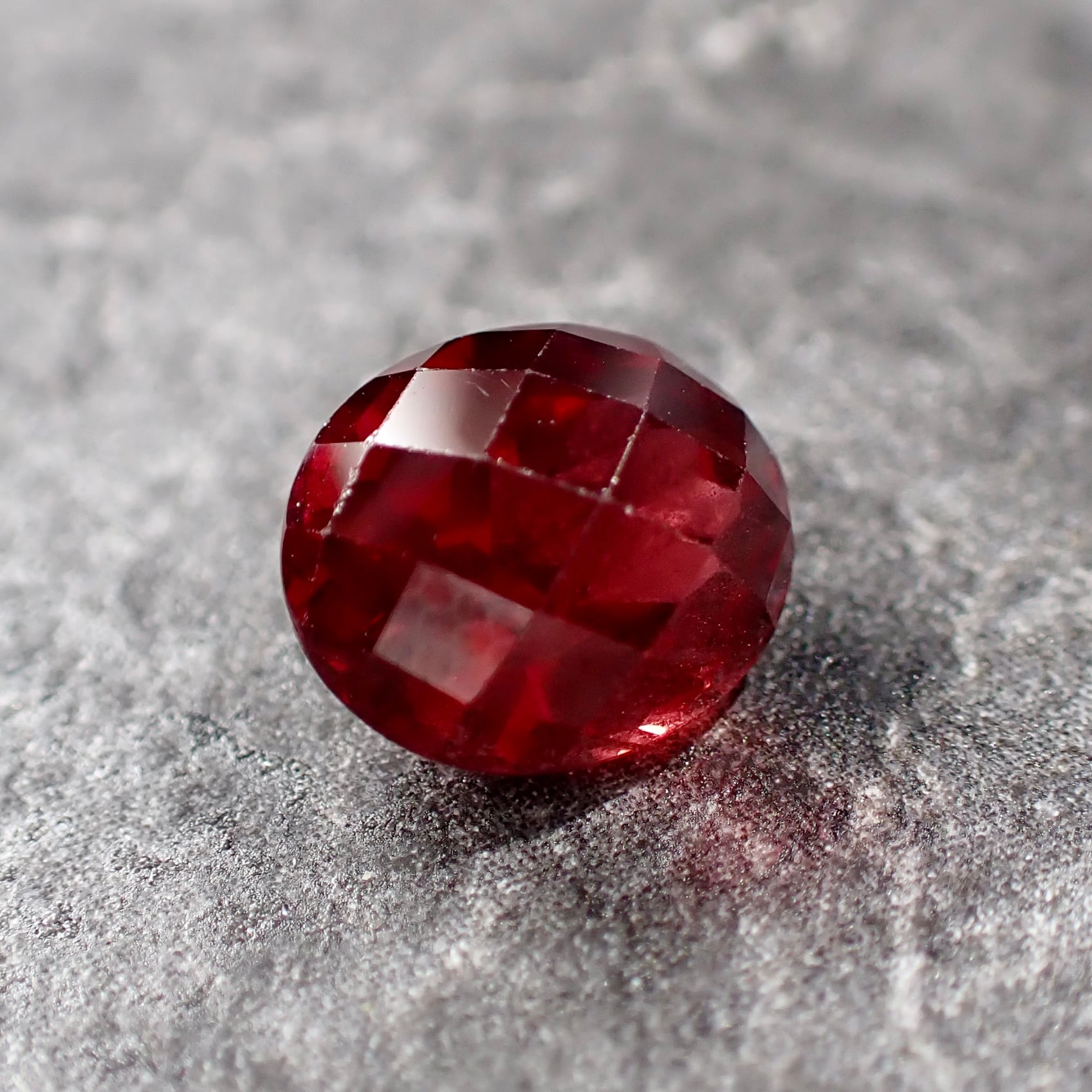 チェッカーボードカットから覗くオレンジ混じりのレッドカラーが美しいです。