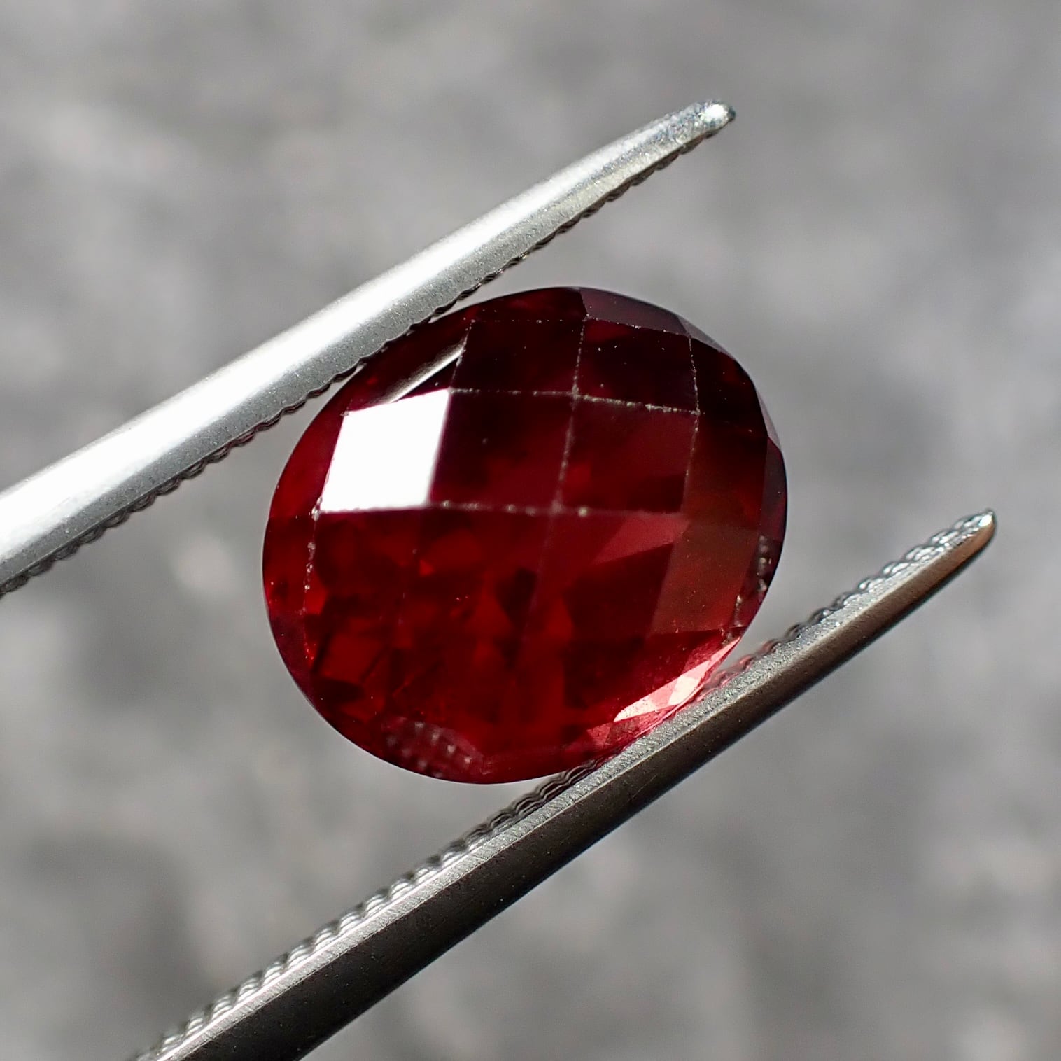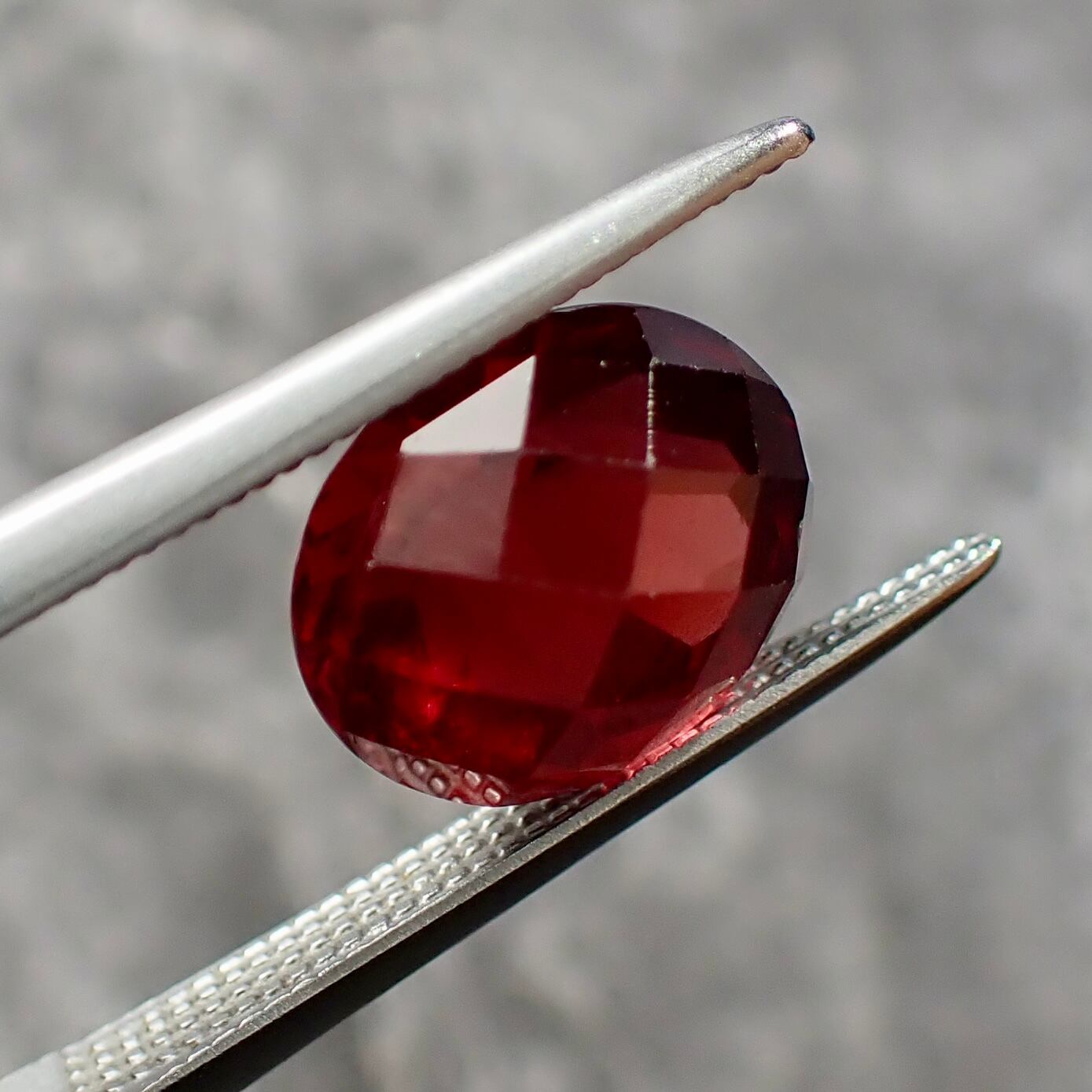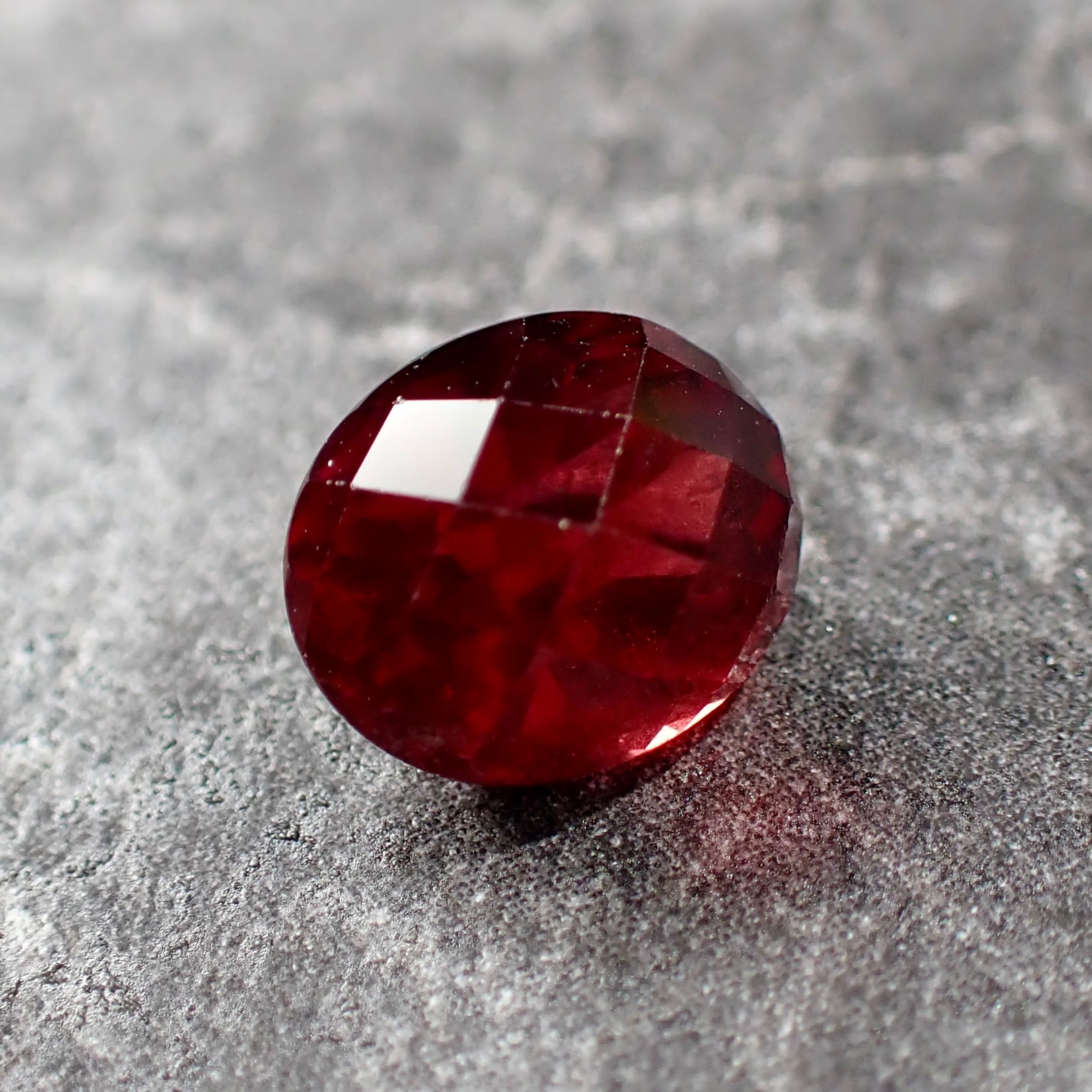 チェッカーボードカットから覗くオレンジ混じりのレッドカラーが美しいです。
