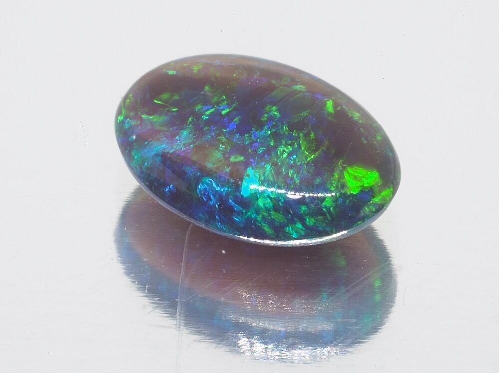 ブラックオパールは不透明な黒~濃い灰色を地色として持つオパールの1つで、遊色効果によって虹色といわれるほどの多彩な色を放ちます。その多彩な色彩は決して同じものはありません。
