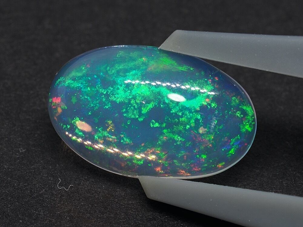 遊色の撮影が非常に難しく写真で全てお伝え出来ませんが、実物はギラギラしていて大変綺麗です。特にグリーンの遊色が多く、赤とオレンジが次いで多い印象です。