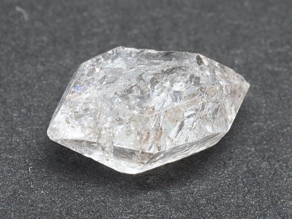透明な水晶の中で、点在する石油がネオンブルーに光る様子は本当に幻想的です。