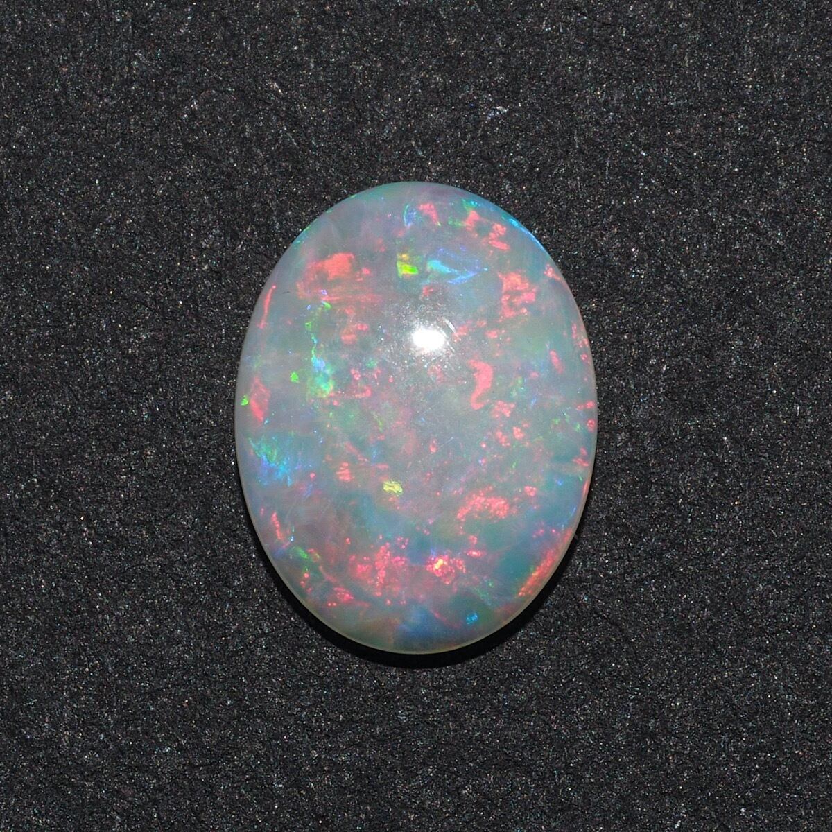 オパールは遊色の撮影が非常に難しく写真で全てお伝え出来ませんが、実物はギラギラしていて大変綺麗です。こちらは平べったいオーバルで遊色はレッド、次いでブルーとグリーンがメインです。