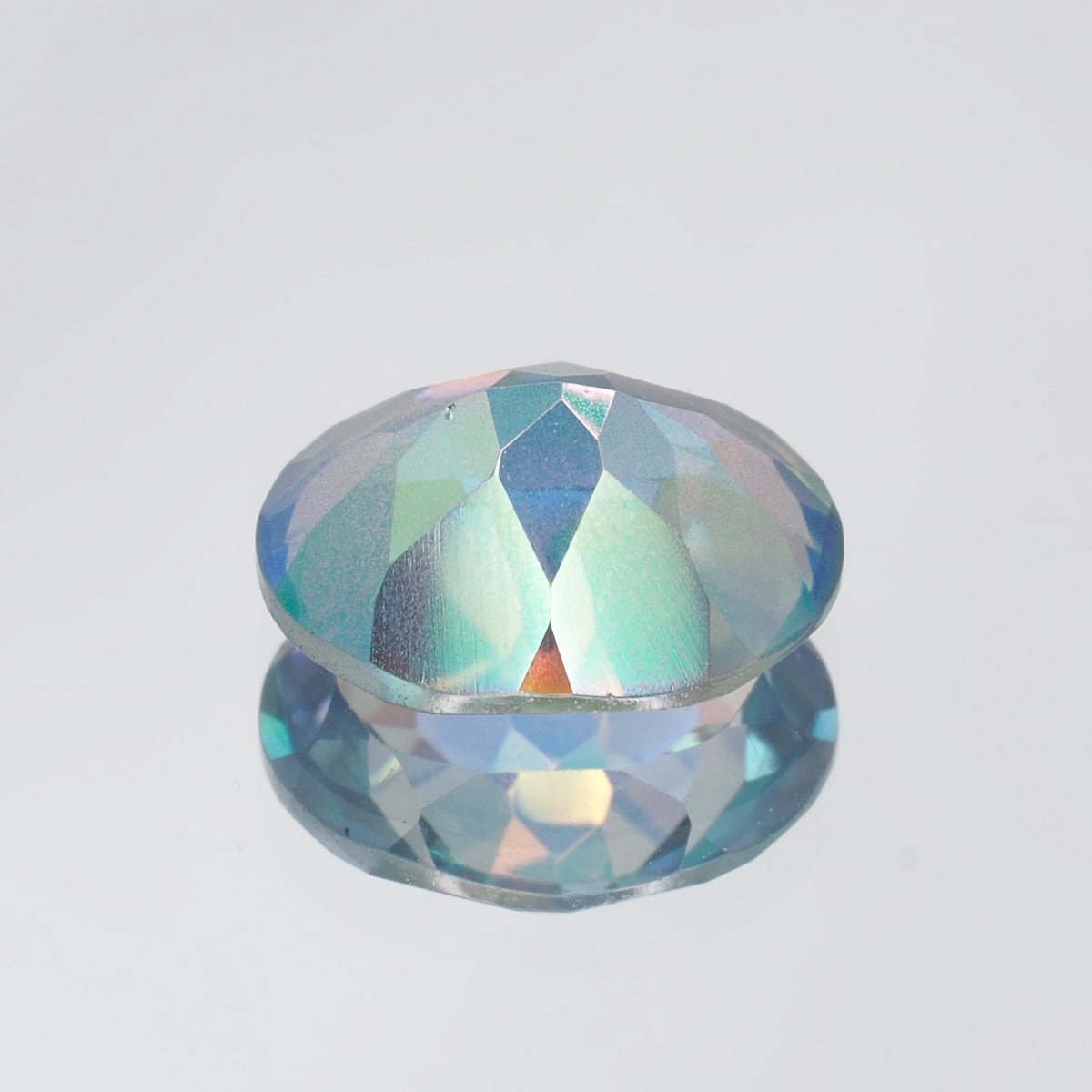 Mystic(神秘的な)Quartz(水晶)の名前からわかる通り、ミスティッククォーツは天然クォーツ(水晶)を人為的に加工した石です。チタンを高温で蒸発させて、水晶の表面に付着させる「蒸着」という方法でこのような輝きを生み出しています。