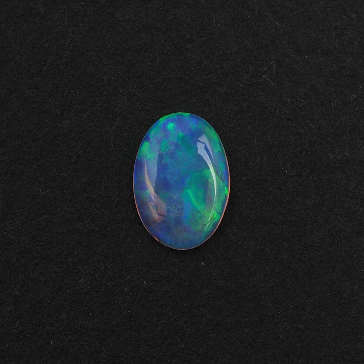 オパールは遊色の撮影が非常に難しく写真で全てお伝え出来ませんが、実物はギラギラしていて大変綺麗です。こちらは平べったいオーバルで遊色はブルーとグリーンがメインです。