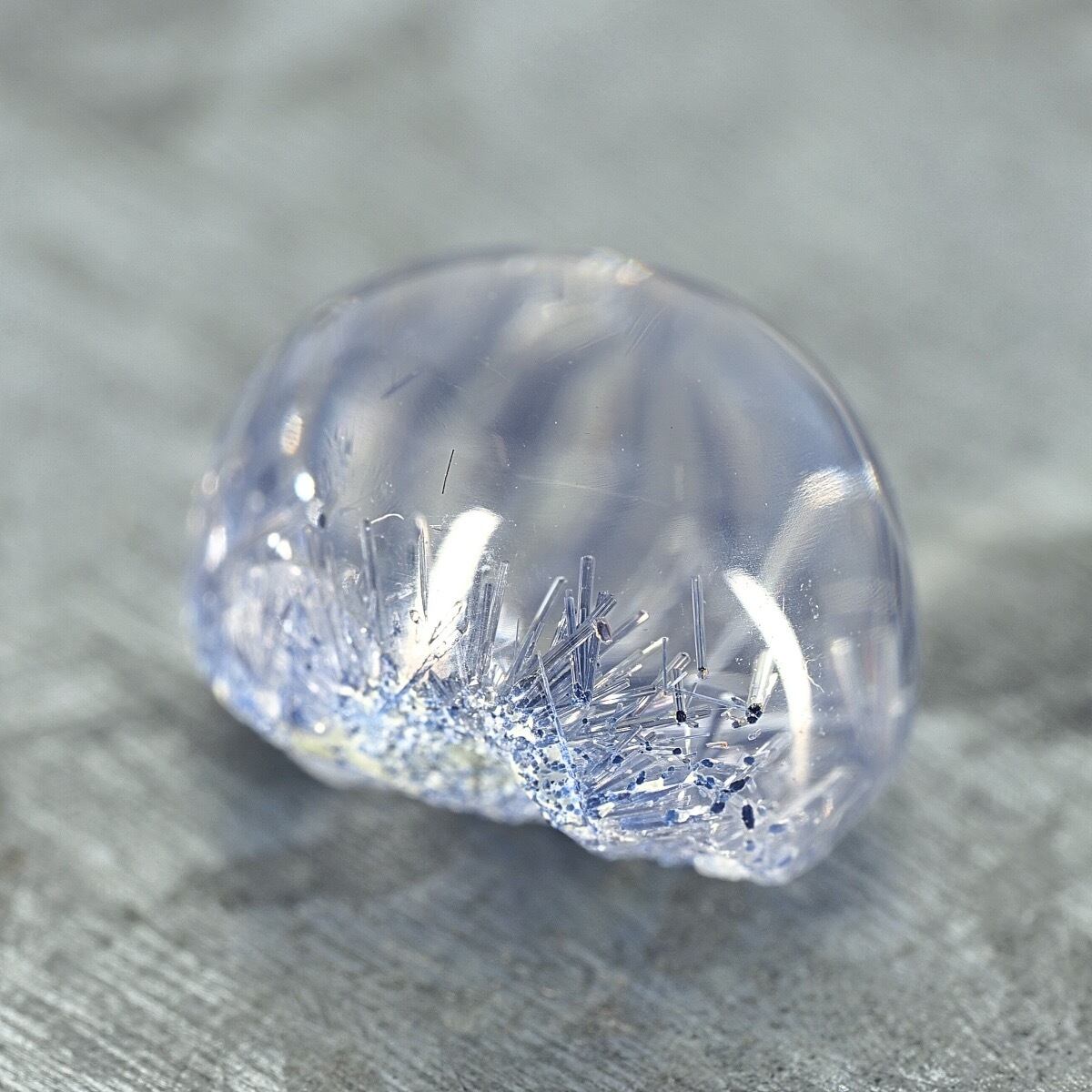「デュモルチェライトインクォーツ」とは、水晶が成長していく過程でデュモルチェライトを取り込んだものをいいます。