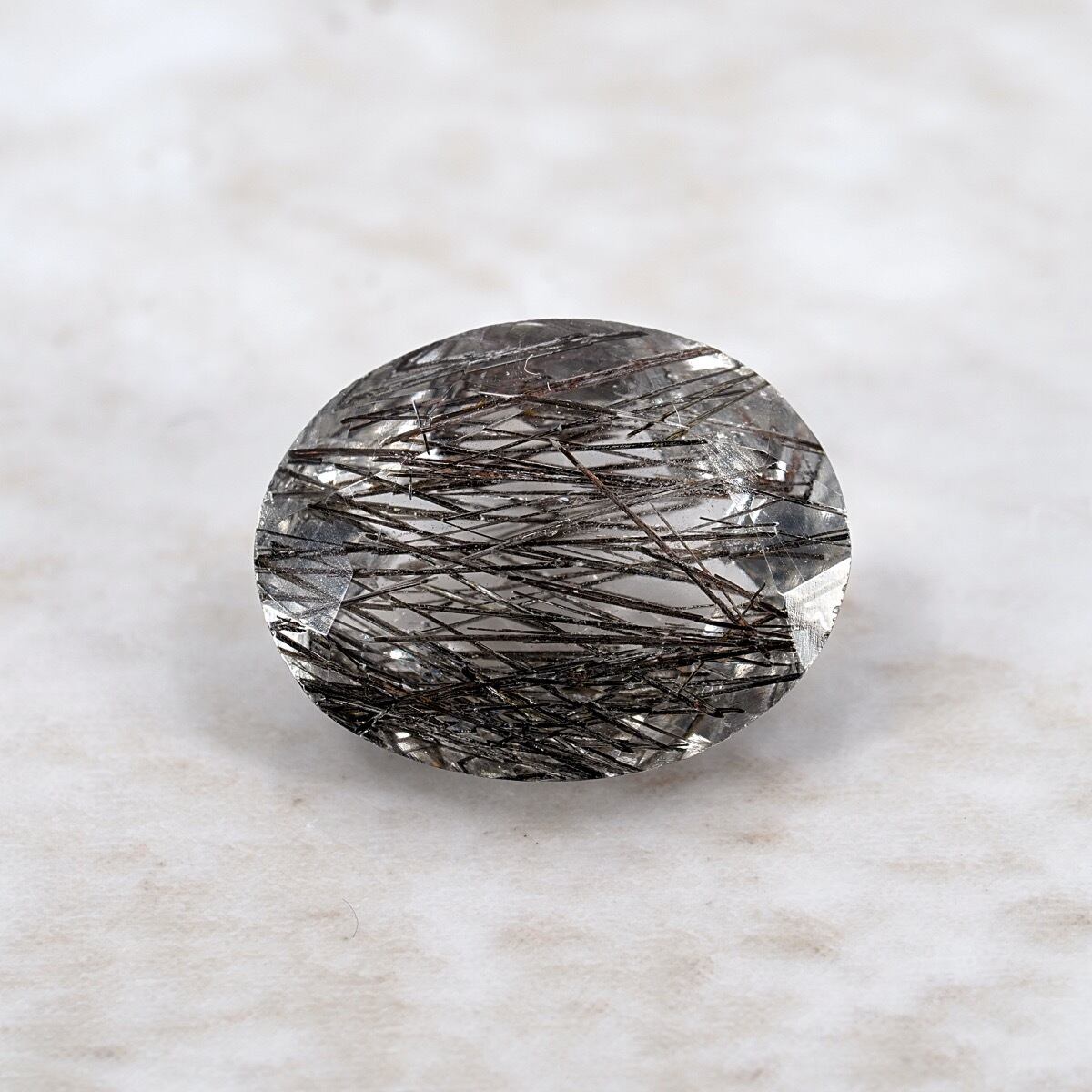 ブラックルチルクォーツは、黒い二酸化チタン鉱物が内包されている水晶です。水晶の中に見られる針状の結晶が二酸化チタンです。ブラックトルマリンインクォーツと混同されがちですが、こちらはニードルの色や特徴からルチルレイテッドクォーツ(ルチレイテッドクォーツ)となります。針が長め、そしてブラウンがかった針です。