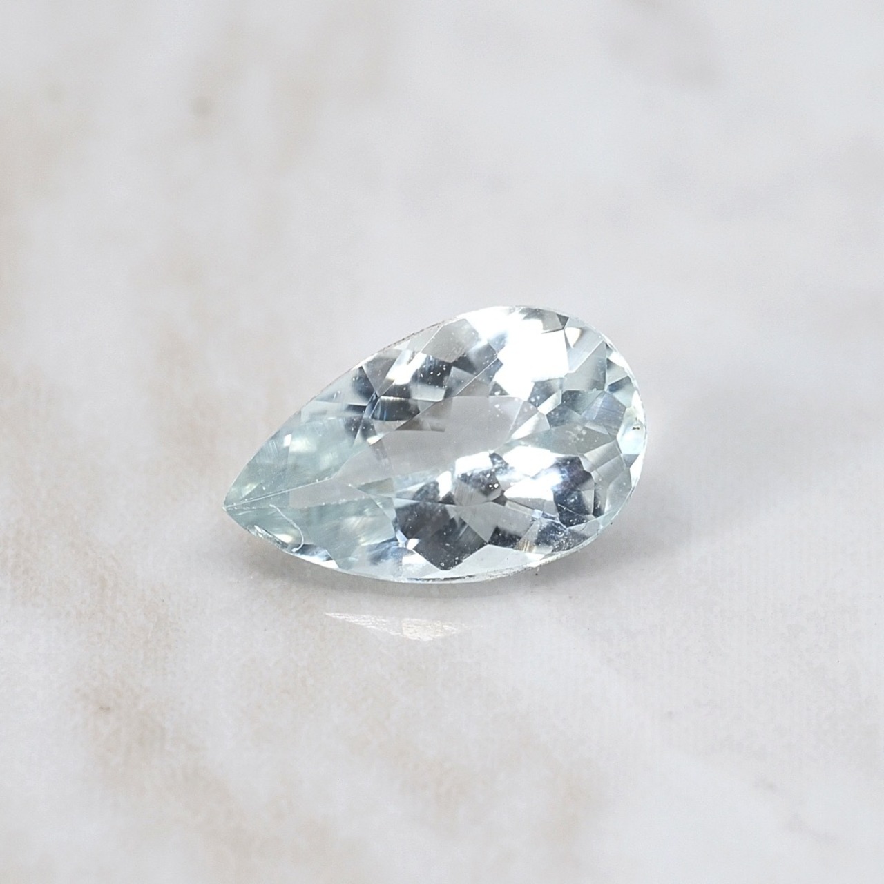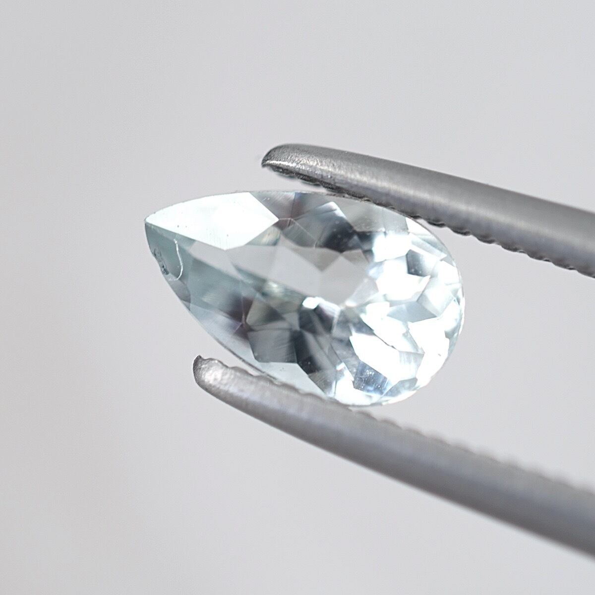 エーゲ海の水の色のような淡いライトブルーグリーンが独特でとても綺麗!アンブリゴナイト/モンテブラサイトは、宝石質の産出自体が希少ですが中でもこの透明度はさらに希少です。