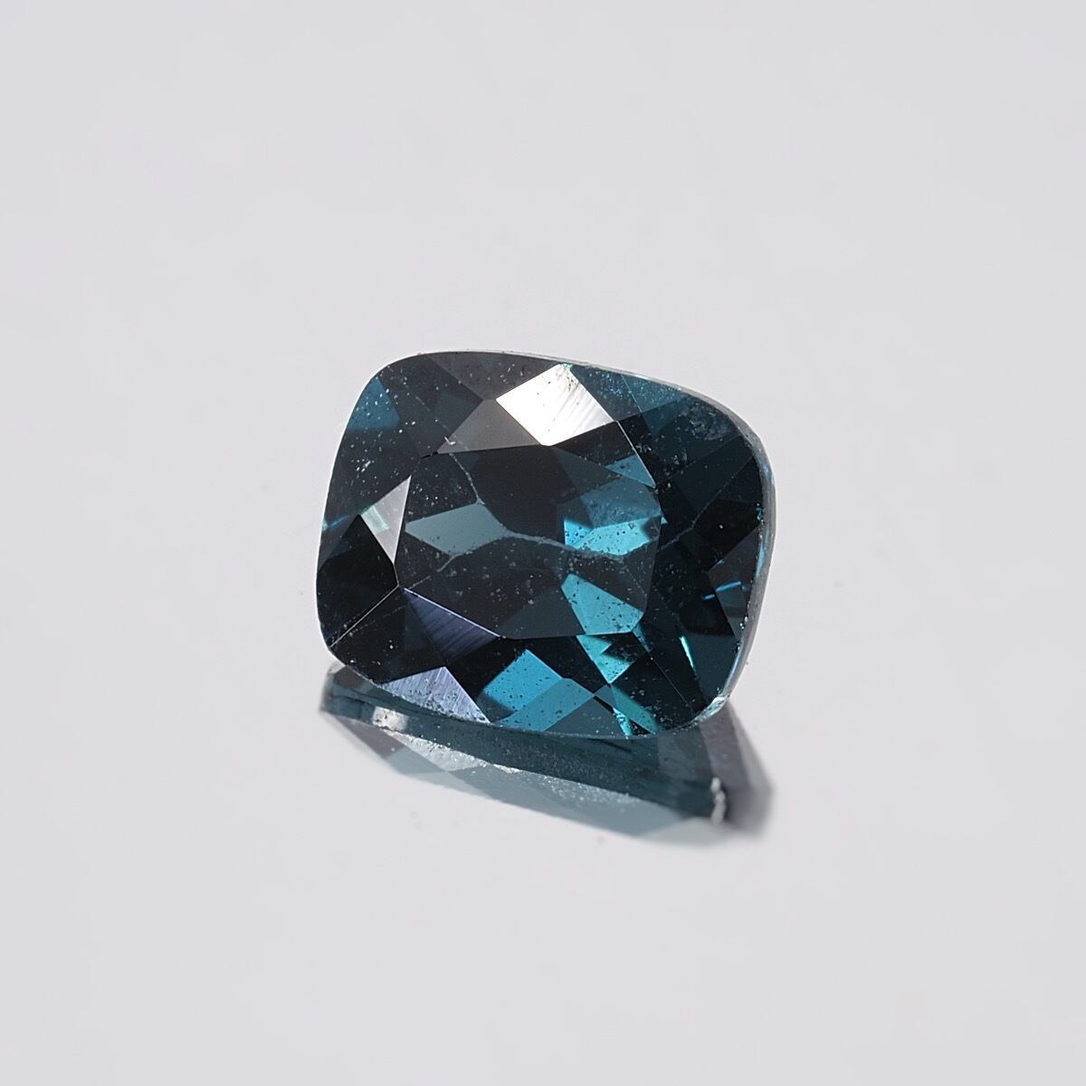 8月誕生石で、一見サファイアと見間違うような濃いブルーグリーンが美しいスピネル。この石にしては少し珍しいクッションカットでリングやペンダントの中石にも良さそうですね。別角度からの色合いも大変美しいです。