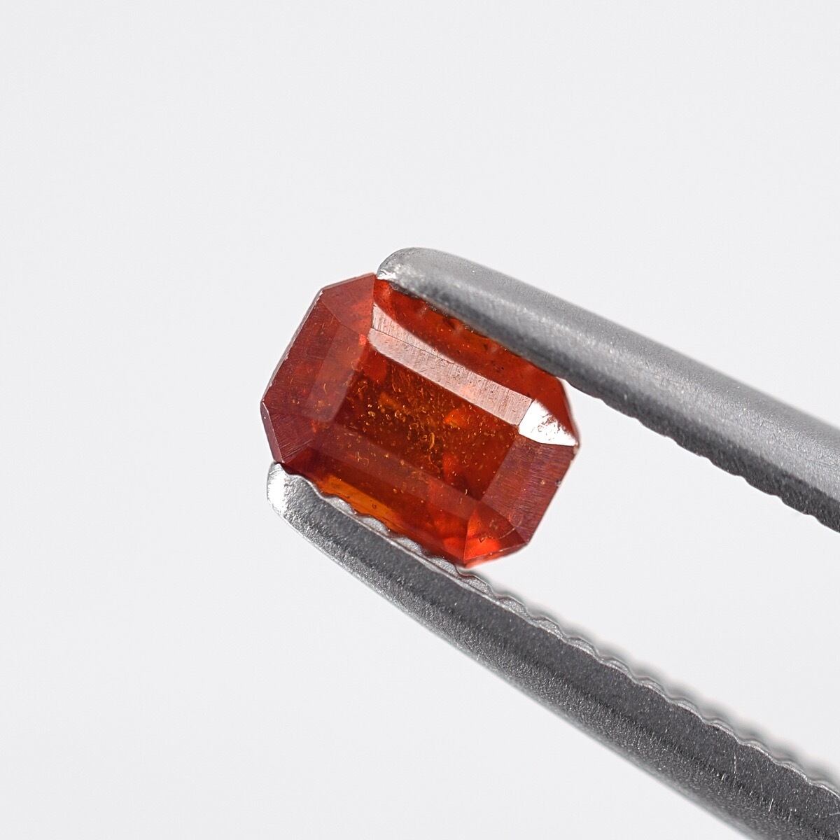 人気のレッドを含んだ濃いめのハニーオレンジカラーのスファレライト。2枚目はストロボオン。このカット、この大きさでも内部からの閃光はさすがダイヤモンド以上の屈折率を誇る石ならでは、ですね!