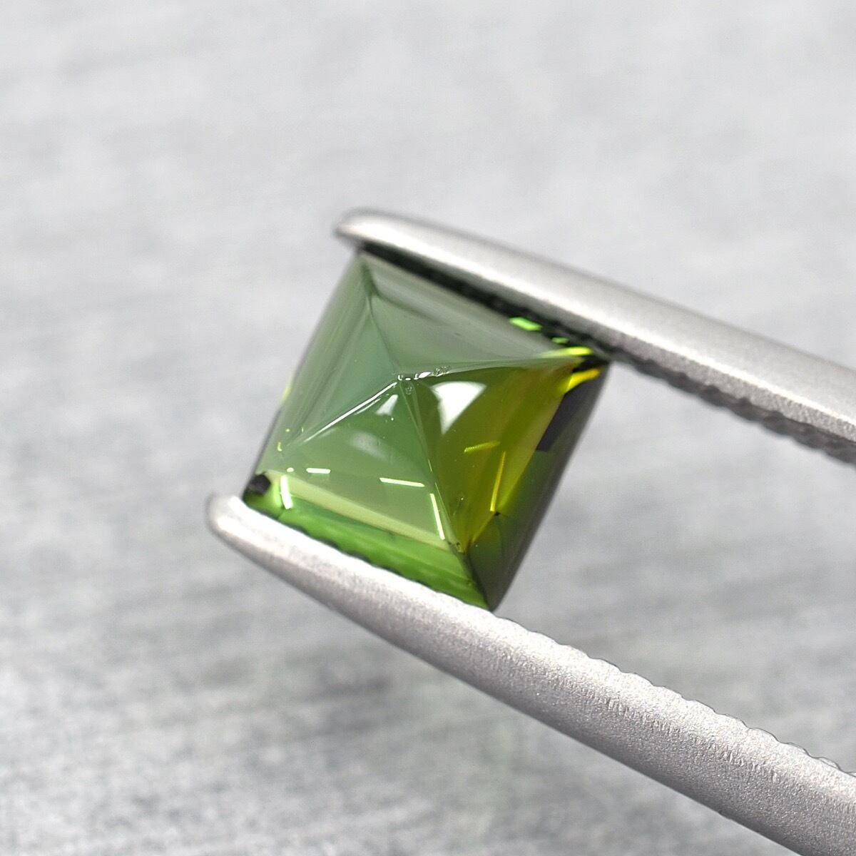 色合いはイエローイッシュグリーン、内包物なども見受けられません。トルマリンとしては相当に綺麗かと思います。加えてシュガーローフになっていて可愛さが飛び出してきそうですね!