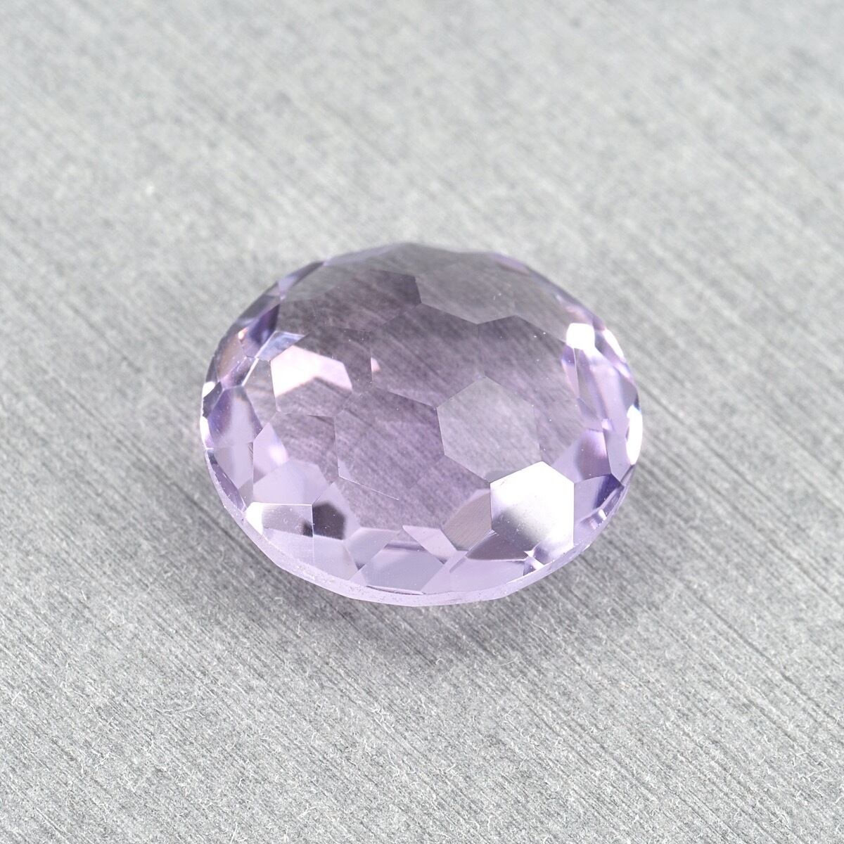 両面ともに多角(六角形)のファセットカットがされたアメジスト。ちょっと珍しくて面白いカット形状ですね。少し色合いは薄めですが大粒です。