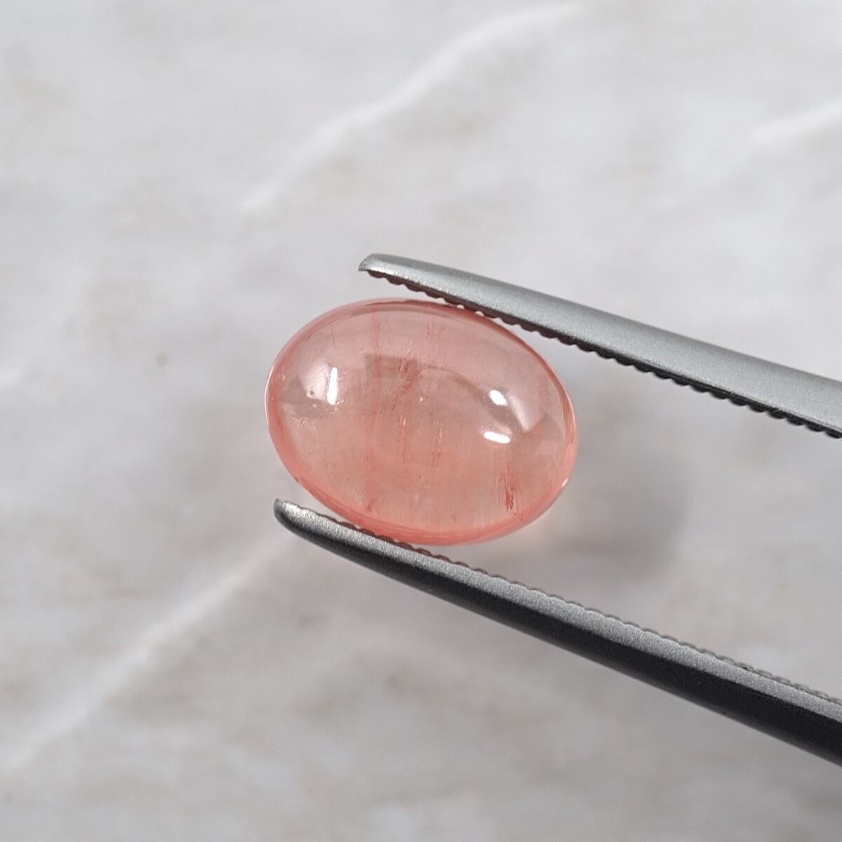 すでに閉山している稲倉石鉱山の希少な国産ロードクロサイトです。ご覧の通り透明度が高く非常に美しい佇まいです。柔らかい桜のような色合いですが、さらにレアという響きを聞くと石の中へ吸い込まれそうになりますね!こちらは内包物が比較的あるので気持ちお安めにします。