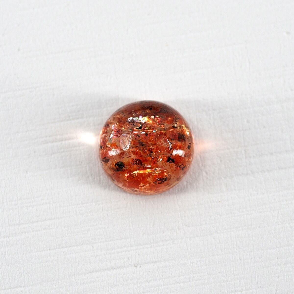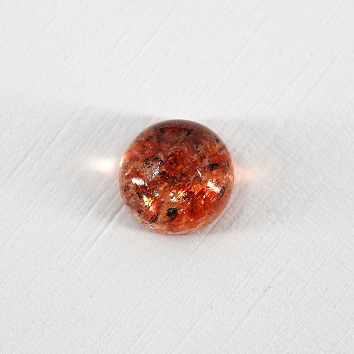 レピドクロサイトにマイカ(雲母)を含む最高級にして希少なサンストーン、虹を纏うギラつきで角度によってシラーがバチバチと光っています。こちらはほぼ全面にびっしり内包されていて非常に綺麗です!