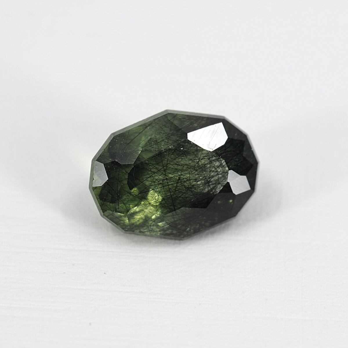 ルドウィジャイトインペリドット(別名ルードヴィッヒアイトインペリドット)は、ペリドットの内部に針状のルドウィジャイトが内包された珍しいペリドットです。人気のドデカゴン、こちらは一部にニードルがびっしりと入っており黒色部分と濃い緑部分のカラーコントラストがかっこいい一石!