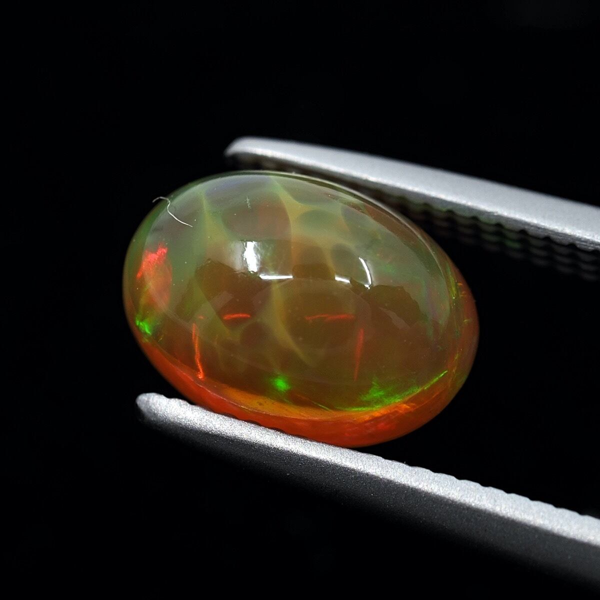 禍々しいハニカム模様、その隙間の下からグリーンとイエローのフラッシュパターンの遊色がガッツリと出る個体です。地色のオレンジからこの見た目はめっちゃめちゃ美しいですね!